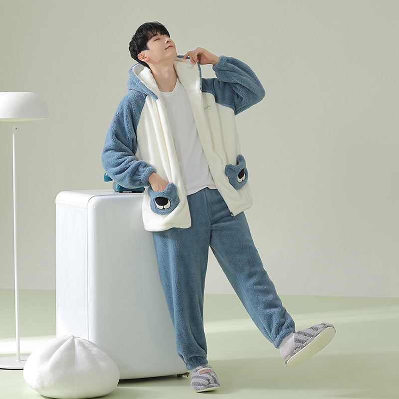 Главная страница > Пижама осенняя и зимняя мужская теплая и плюшевая толстая мультяшная мальчишка коралловый бархат с капюшоном зимняя мужская домашняя одежда