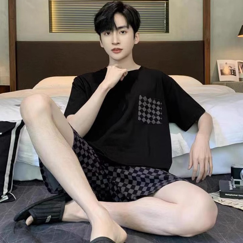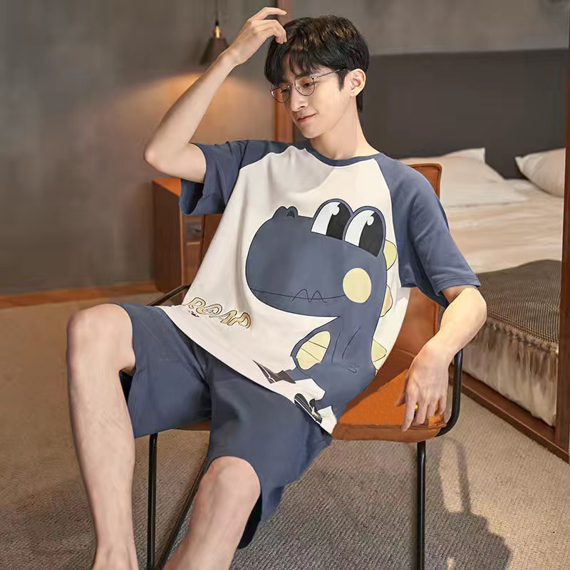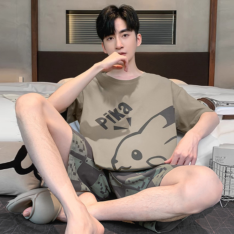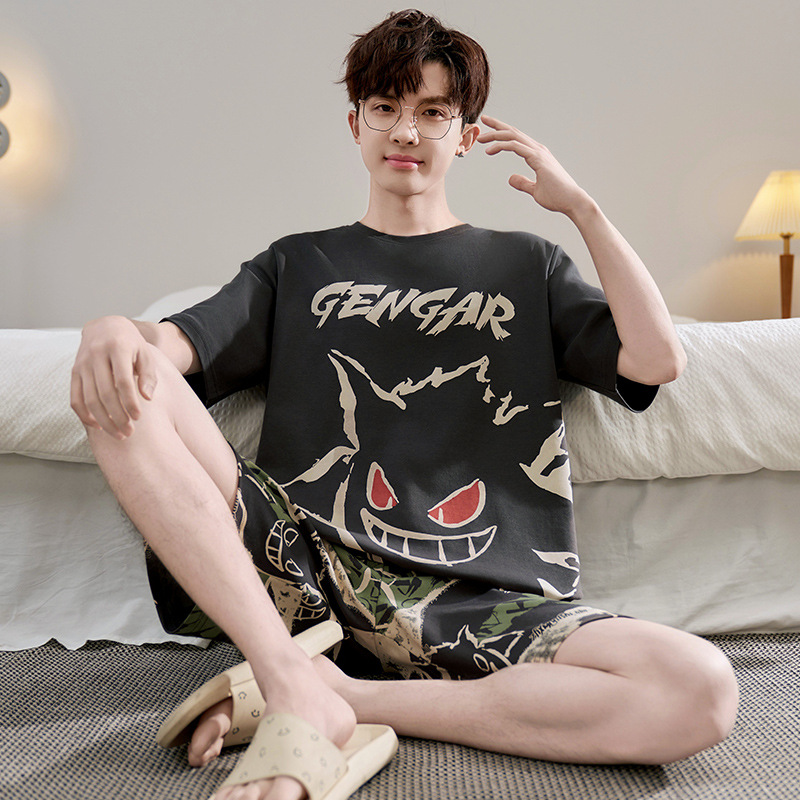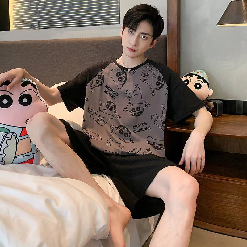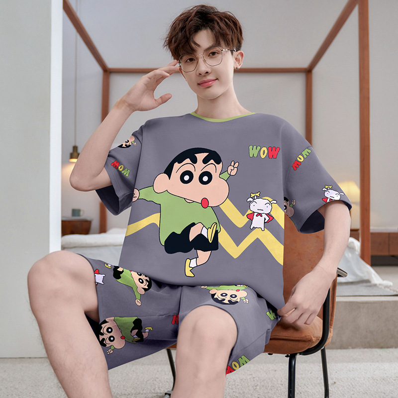 Главная страница > Пижамы мужские летние тонкие шорты с короткими рукавами с героями мультфильмов для подростков, студентов колледжа, повседневный комплект домашней одежды