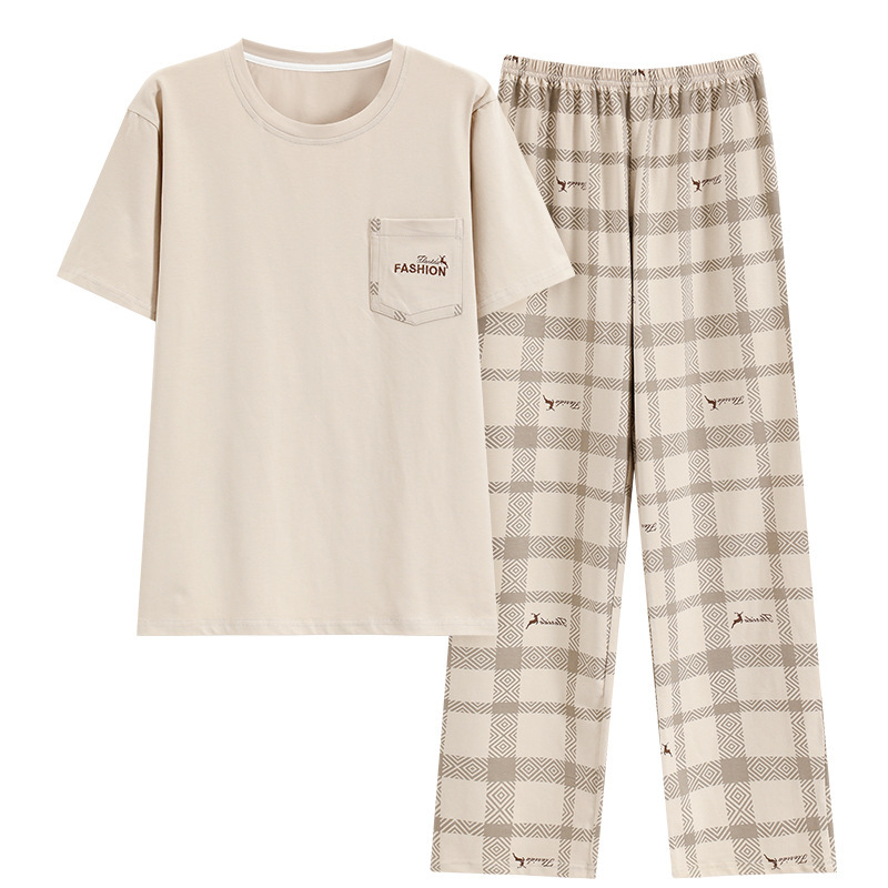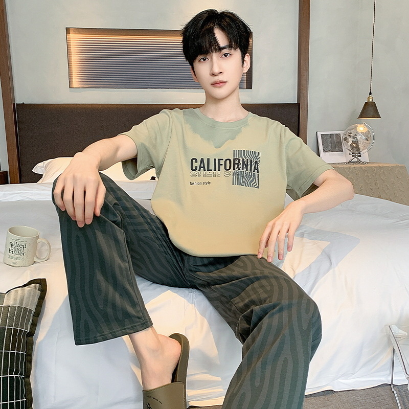 Главная страница > Мужская пижама летом хлопок с короткими рукавами брюки пуловатый повседневный может носить домашнюю одежду на улице