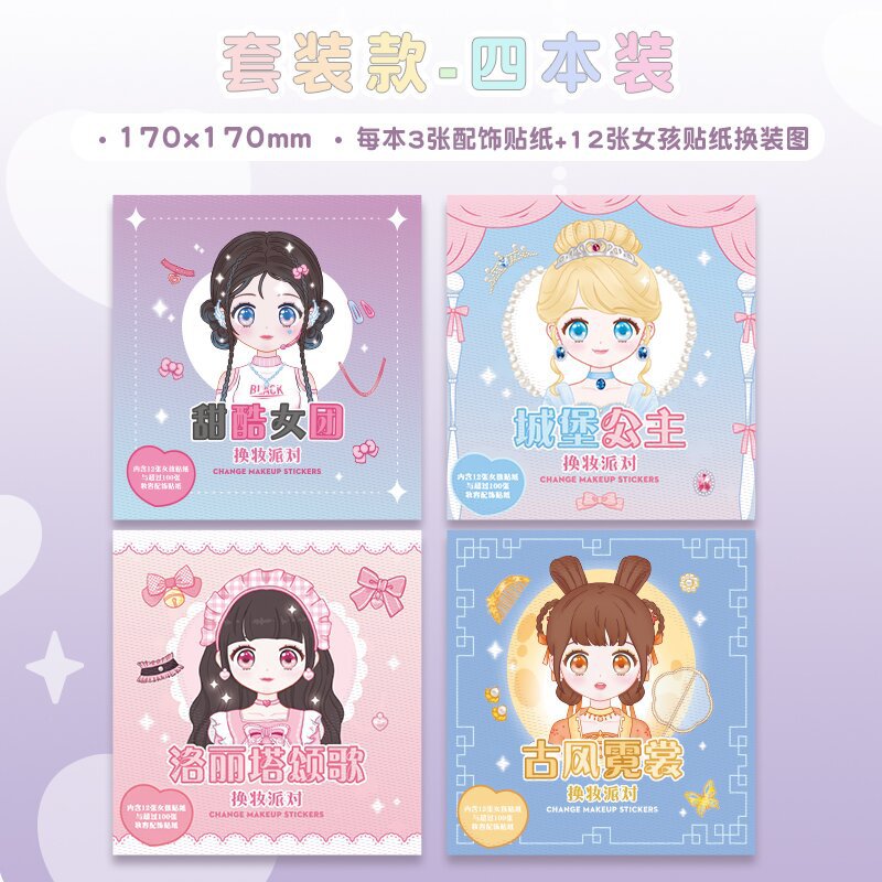 Наклейки для переодевания в костюмы принцесс, наклейки для макияжа, наклейки ручной работы для девочек без вырезания, материалы для ведения дневника.