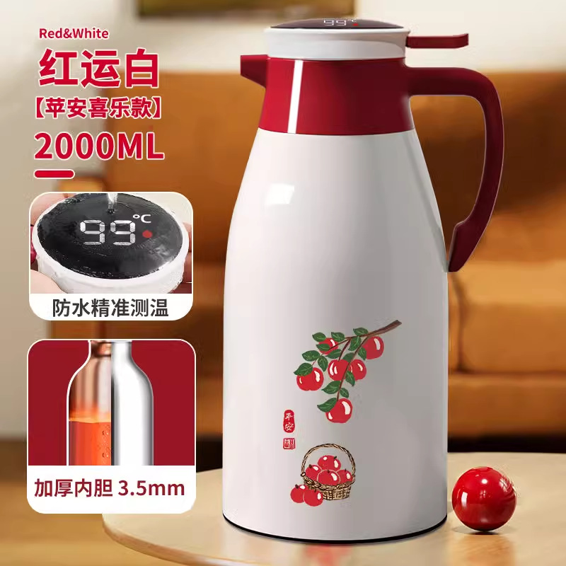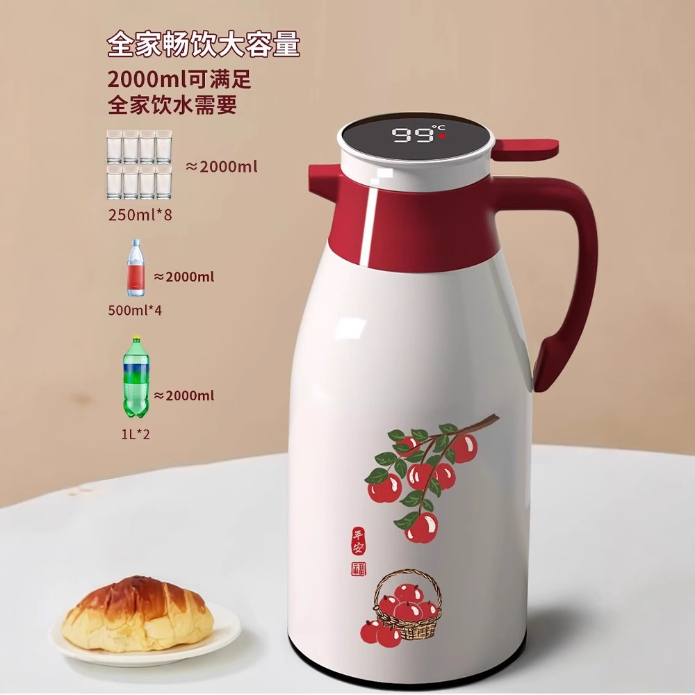 02_Модернизированная утолщенная модель [Ping'an Xile] красный 2,0 л (внутренний бак утолщен на 0,3 см + интеллектуальный дисплей температуры + пылезащитный носик)