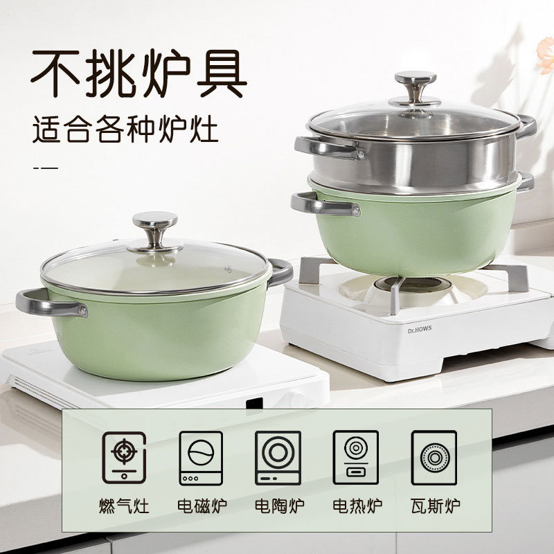 26-керамическая суповая кастрюля + закаленная крышка + пароварка из нержавеющей стали.