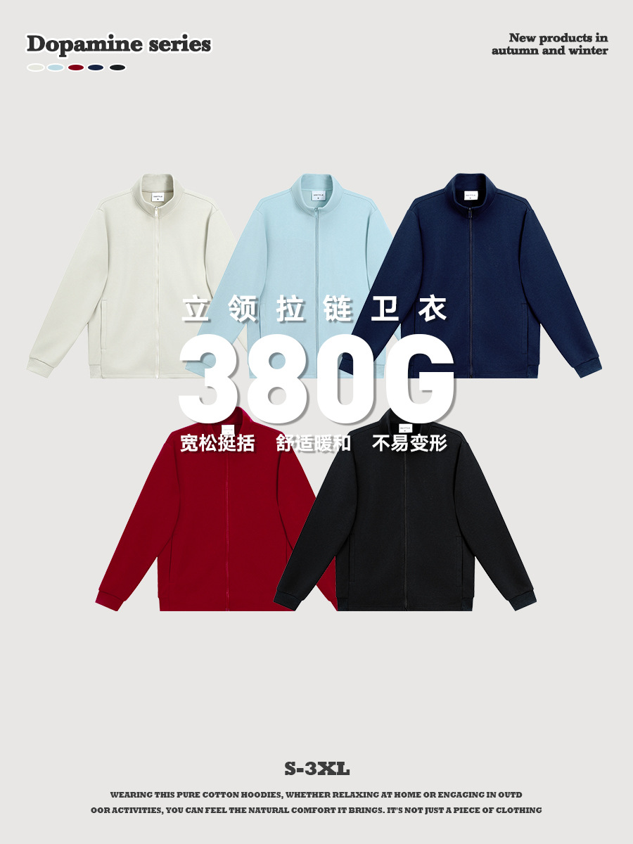 380 г тяжелый осенний и зимний сплошной цвет падающих плеч прилив кардиган на молнии куртка свободная пара американский воротник свитер мужчина