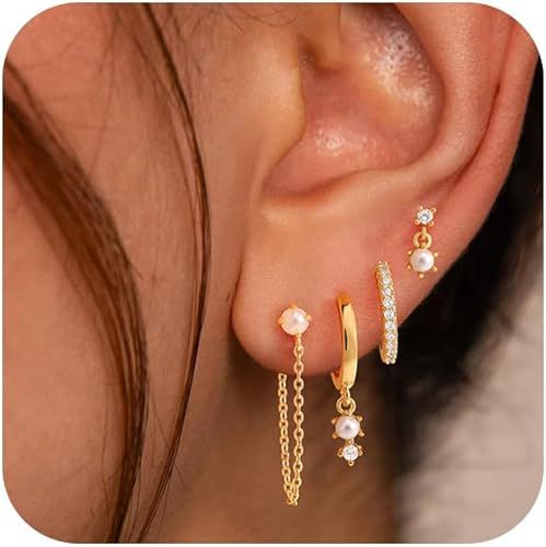 Набор из четырех золотых жемчужных сережек на одно ухо