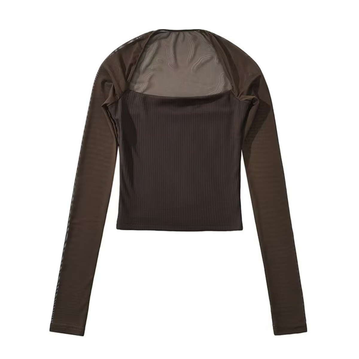 Главная страница > Горячая девушка в сексуальной сетчатой вышивке дизайн футболки с длинными рукавами Женская Осенняя перспектива сексуальный короткий топ для пупка