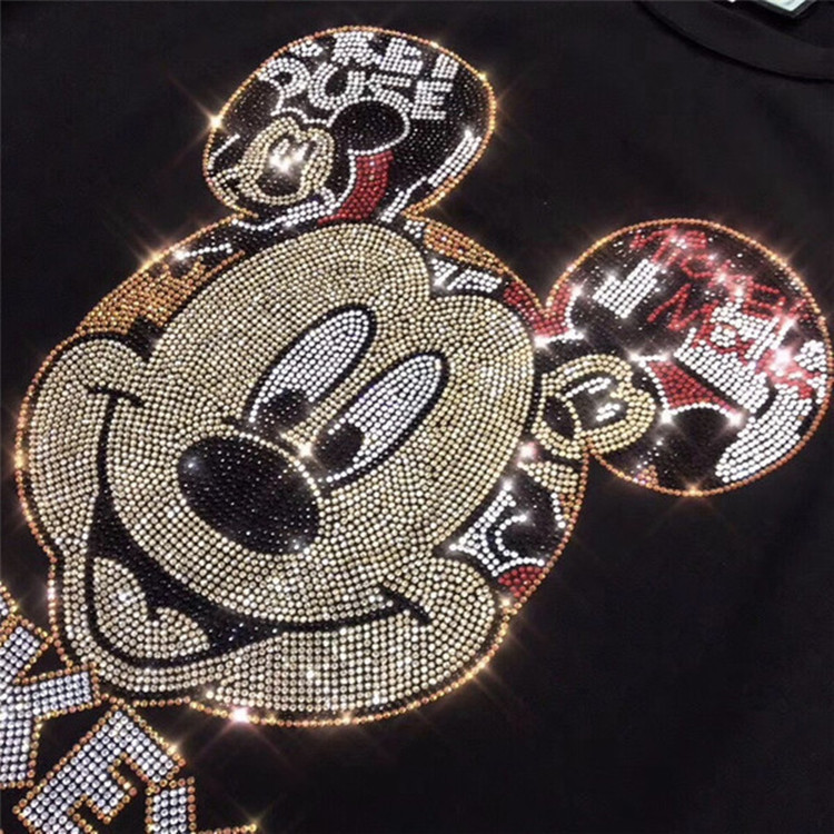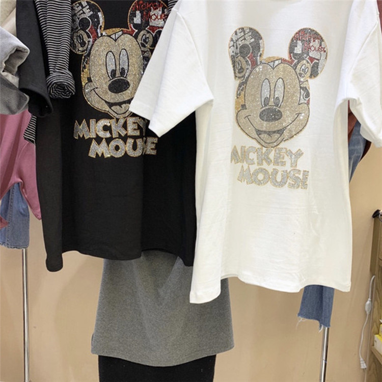 Главная страница > Летняя новая прочная женская футболка с Микки Маусом из чистого хлопка весом 200 г, свободный топ с короткими рукавами и стразами.