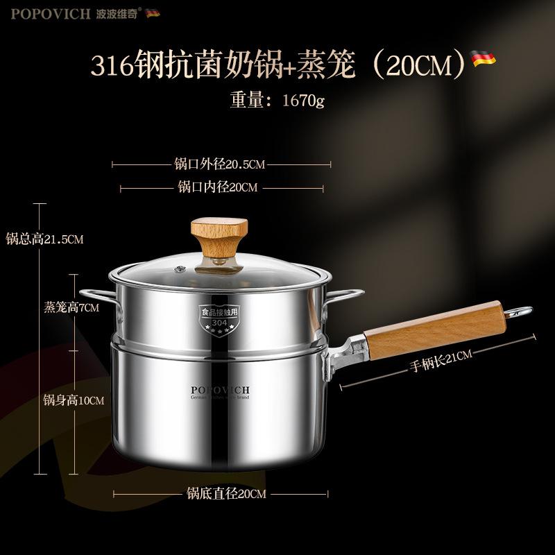 Главная страница > Без покрытия 316 из нержавеющей стали Детская специальная пищевая кастрюля Маленькая кастрюля с молоком Домашняя детская жареная кастрюля антипригарная пароварка