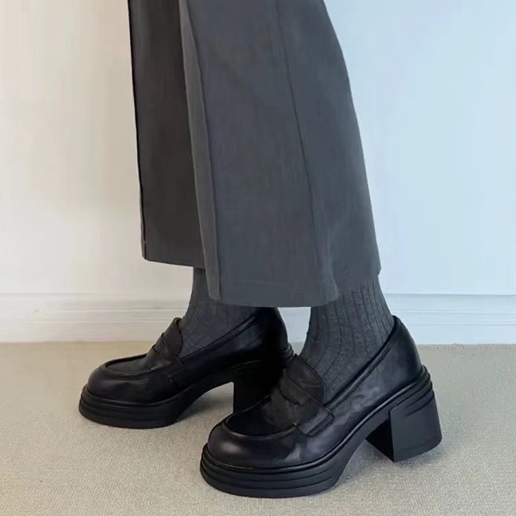 Коровья кожа версия ~ Ретро туфли Lefu на толстой подошве