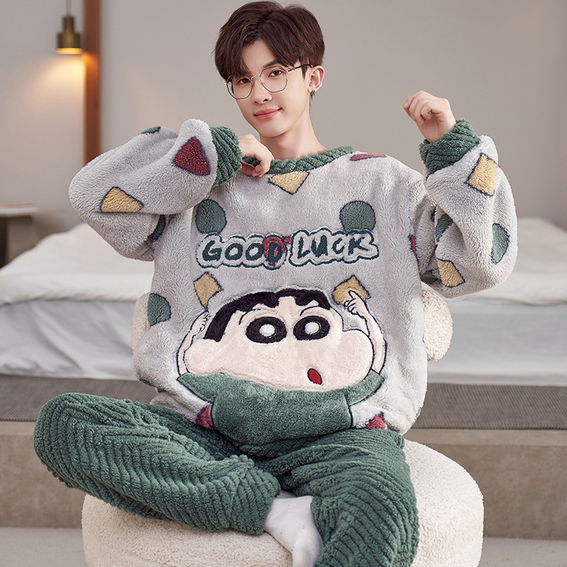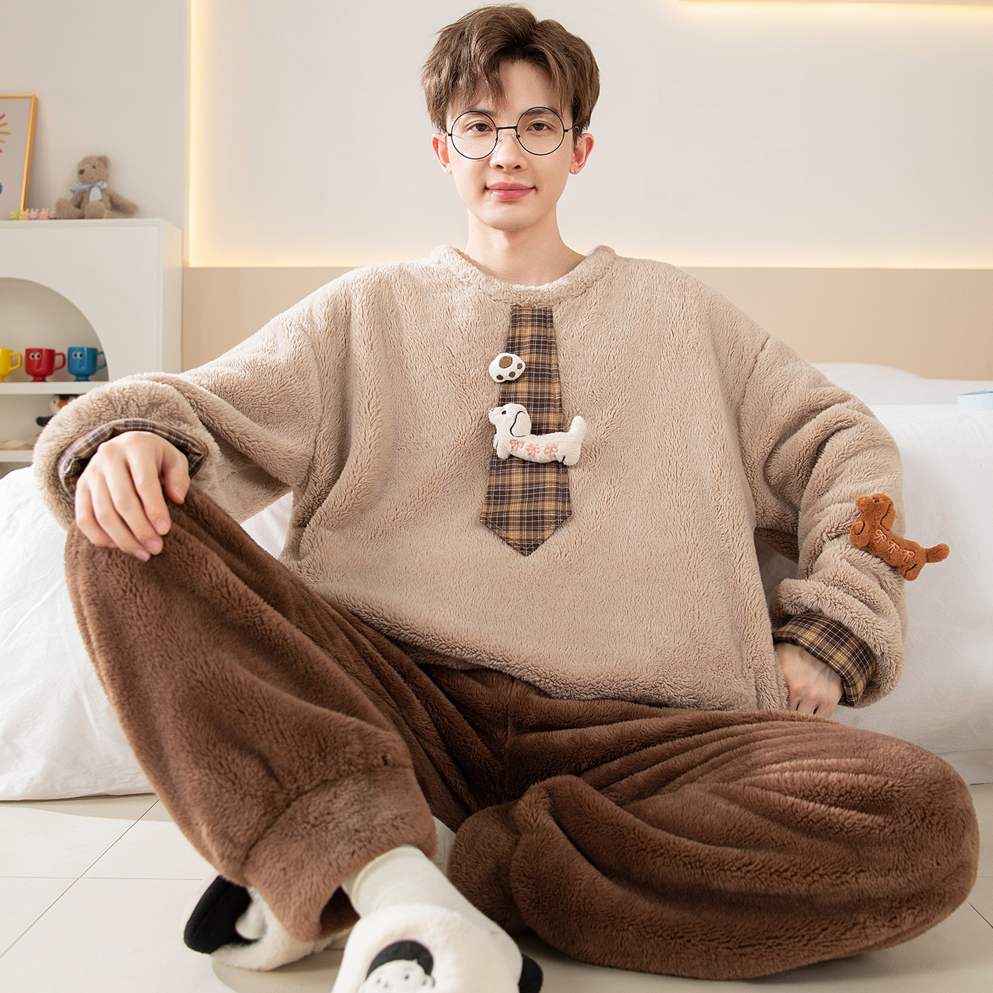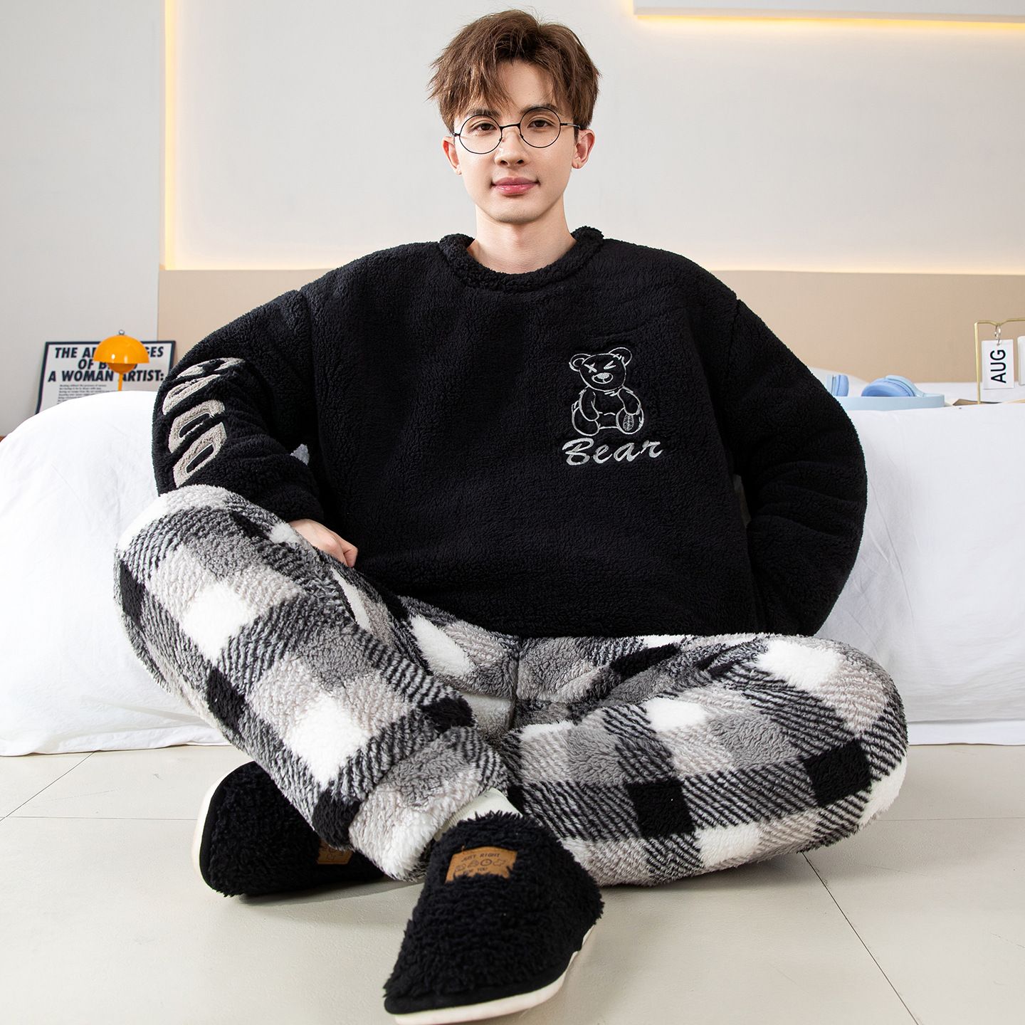 Главная страница > Мягкая хлопчатобумажная пижама с длинным рукавом зимой с круглым вырезом