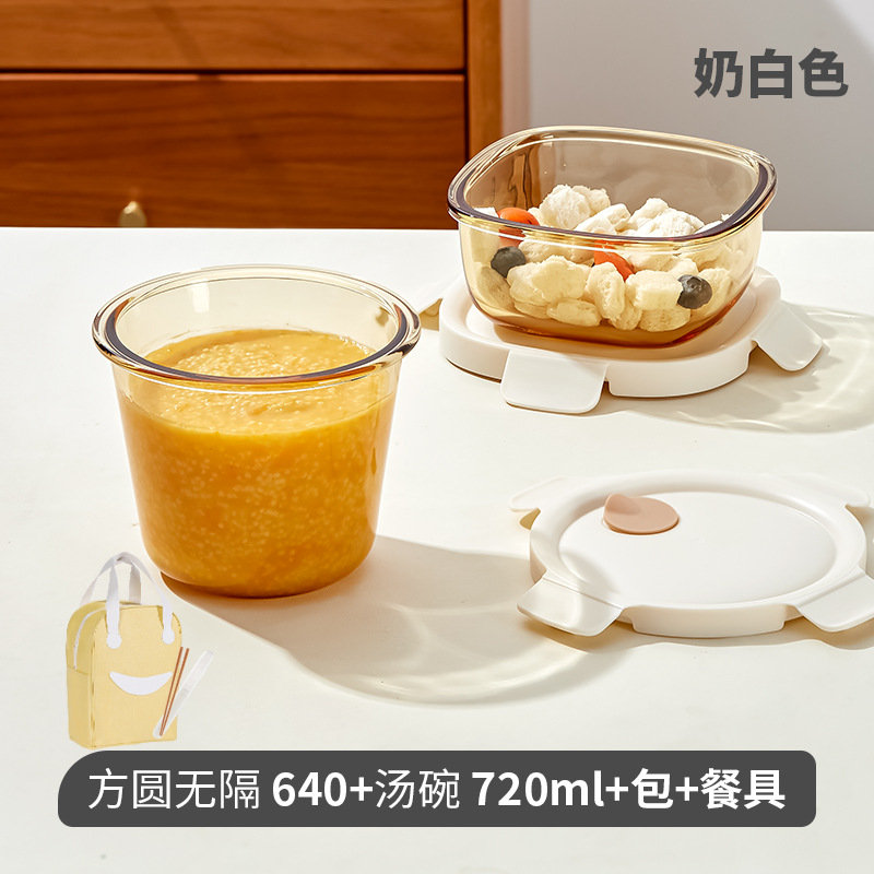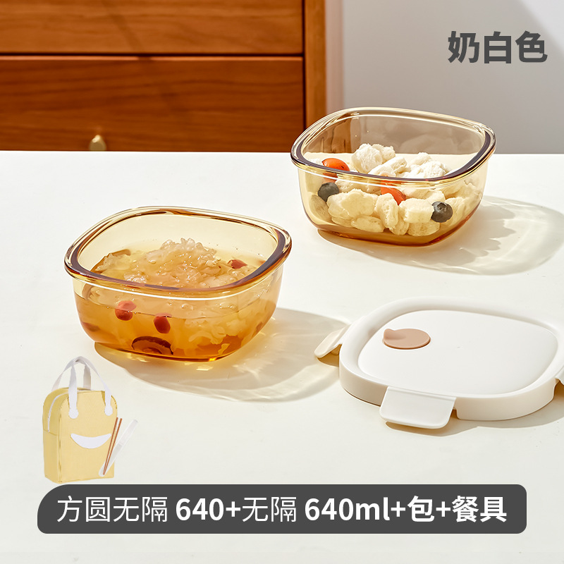 [Набор из 4 предметов] Длинные и круглые три отделения + квадратный круг + сумка + посуда