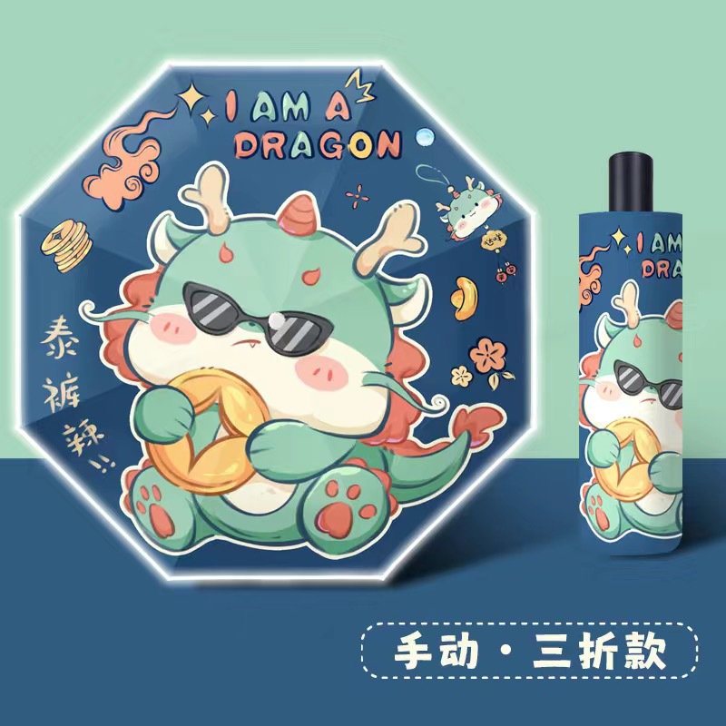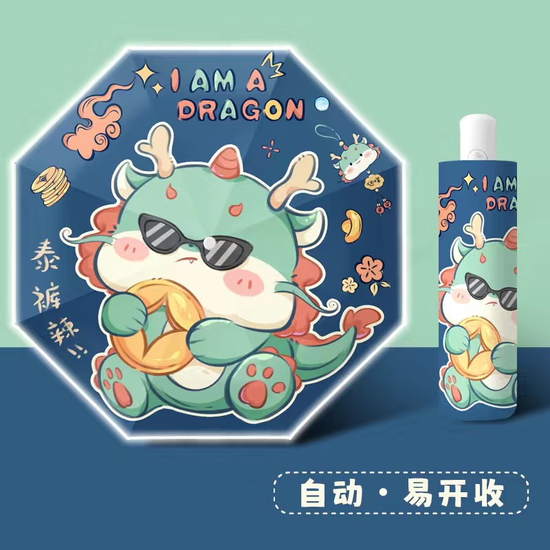 Little Dragon Man-прямой зонт [Светоотражающая полоса + водонепроницаемая крышка]
