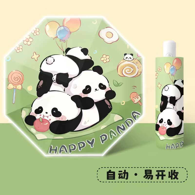 Happy Panda-прямой зонт [Светоотражающая полоса + водонепроницаемая крышка]