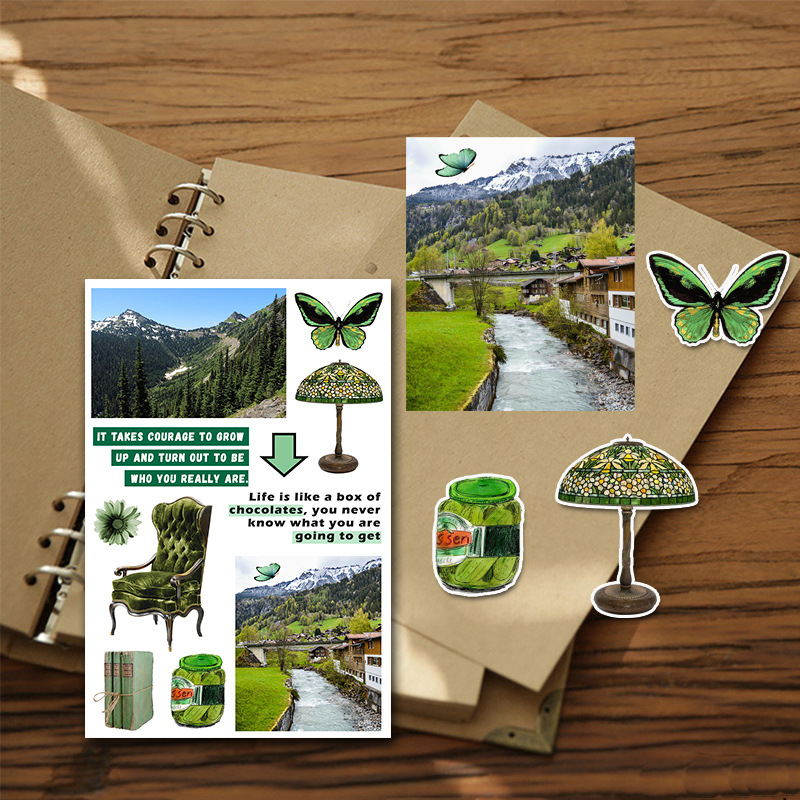 Главная страница > Трансграничная оптовая ручная наклейка для ручного счета Норвежский лес 6 Чжан лесная тропа ландшафтная наклейка свежий зеленый декоративный материал
