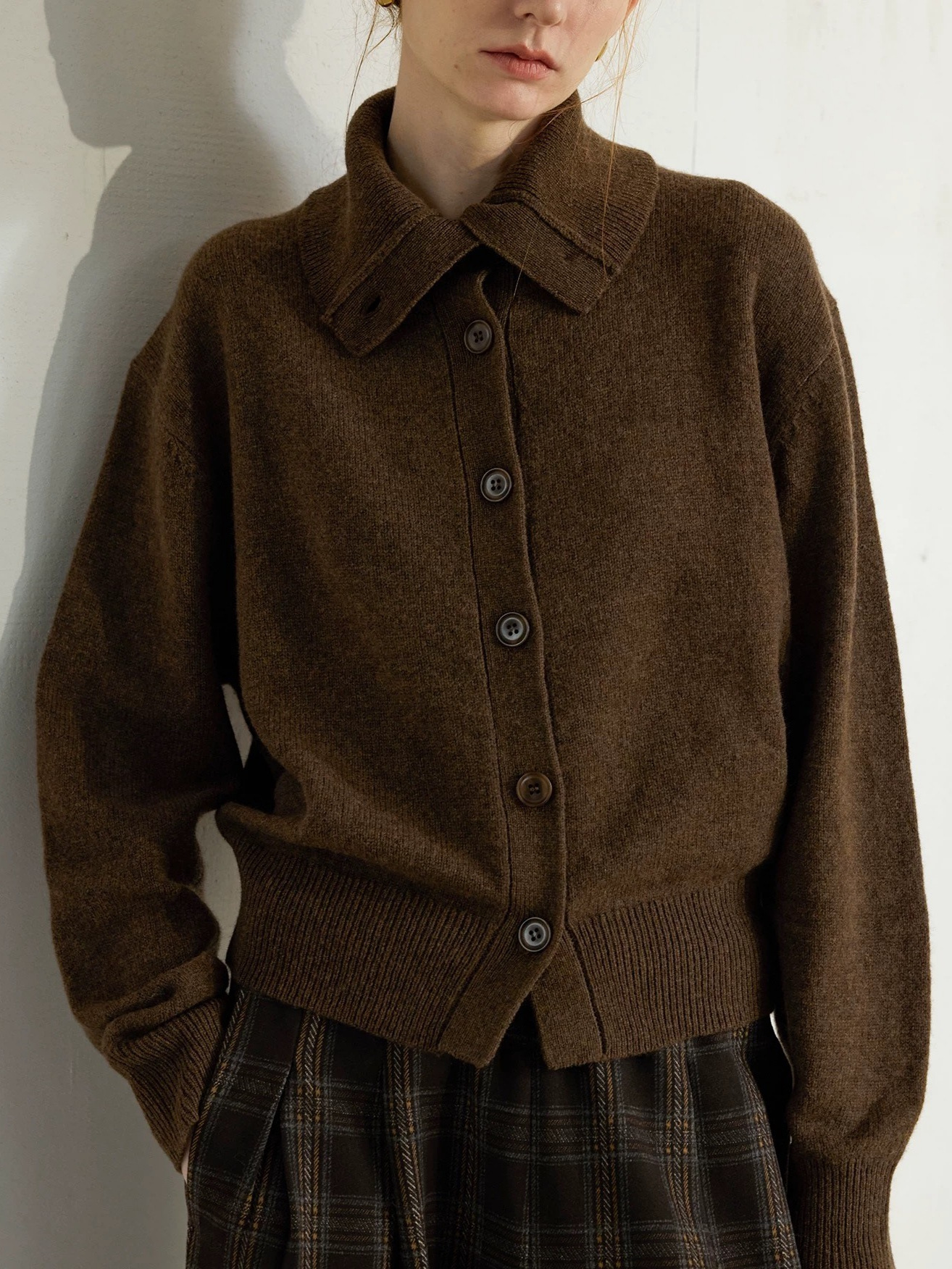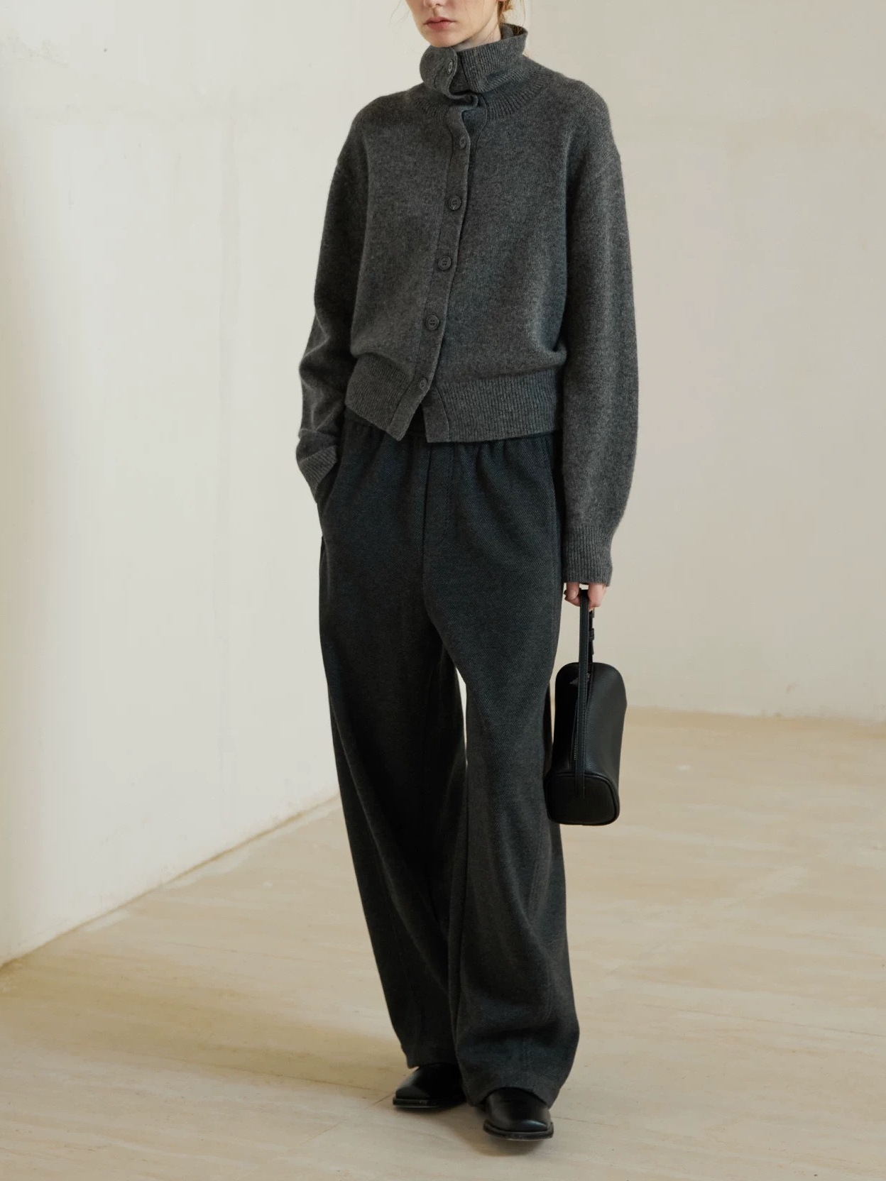 Главная страница > [Сумеречный эхо] Серый свитер с отворотом кардиган с высоким воротником теплый и дружелюбный мягкий клейкий женский короткий трикотажный топ