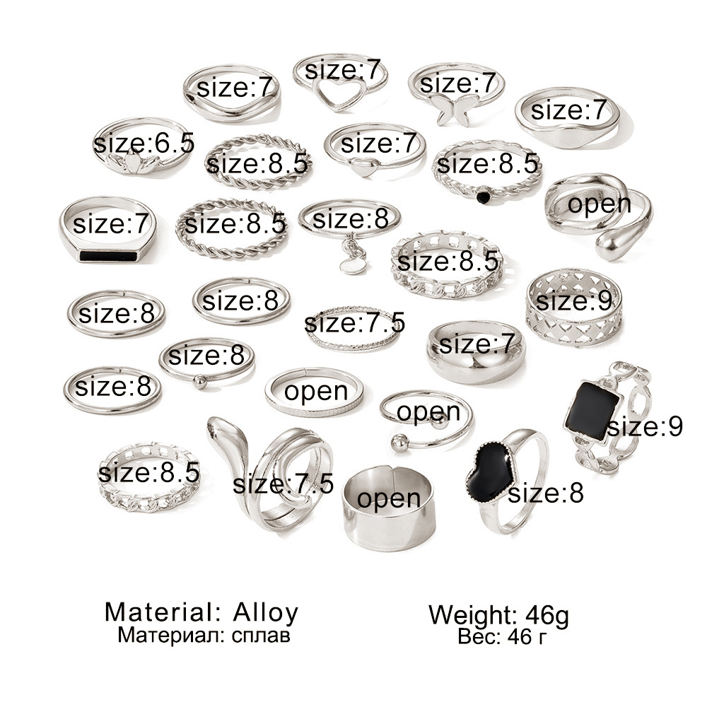 Главная страница > Европейский и американский металлический черный Капля клея любовь квадратное кольцо 27 шт. Набор французский ретро геометрический открывающийся кольцо костюм партия
