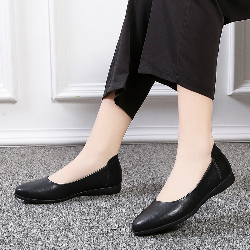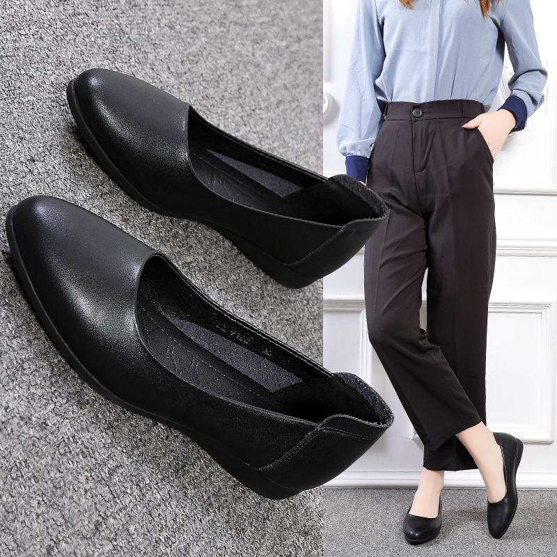 Главная страница > Весенняя рабочая обувь 2023. Рабочая обувь на мягкой подошве. Женские черные туфли большого размера на плоской подошве. Профессиональная обувь на низком каблуке. Модная женская кожаная обувь.