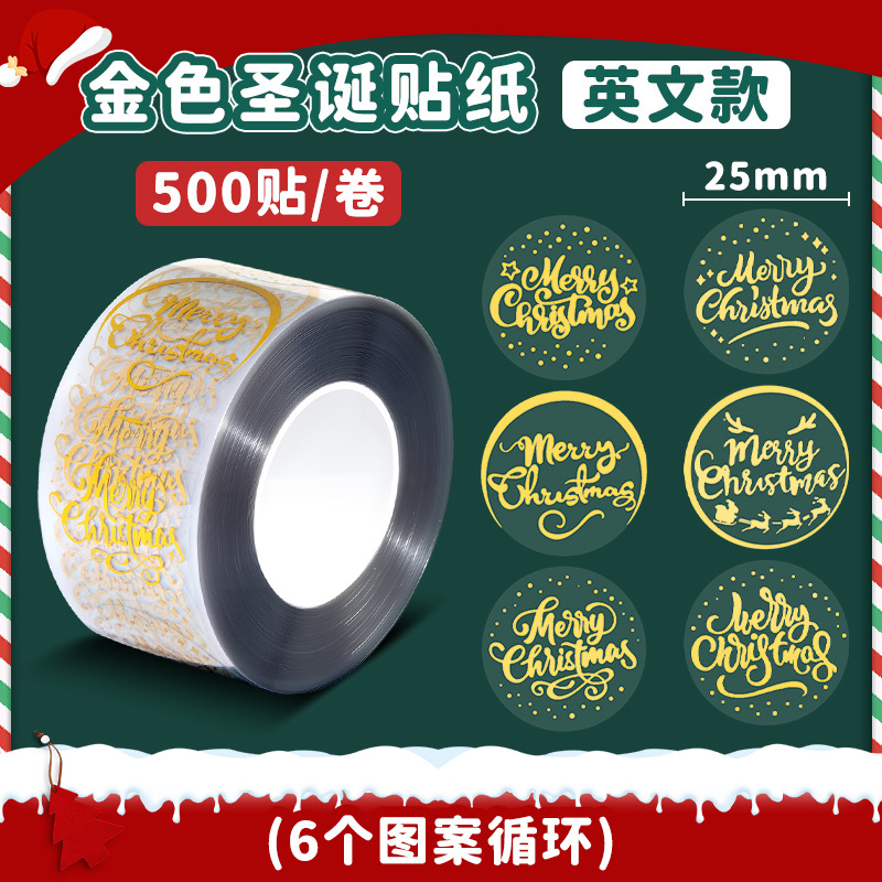 Прозрачные водонепроницаемые наклейки с горячим тиснением на рождественскую тематику [Z0140] Стильный дизайн, большая вместимость, 500 листов/рулон