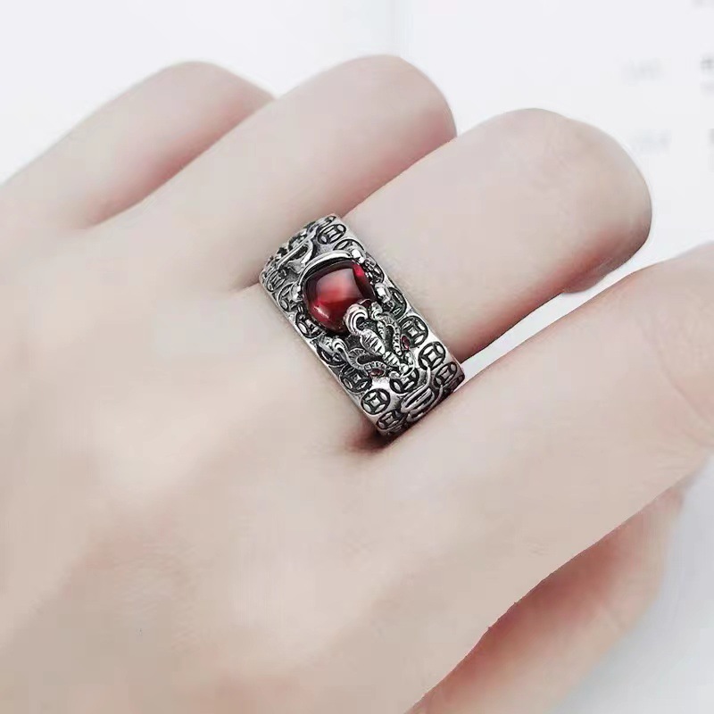 Главная страница > Винтажное тайское серебряное кольцо Pixiu для мужчин и женщин, модное художественное винтажное кольцо с шестисложной мантрой и золотым гранатом.