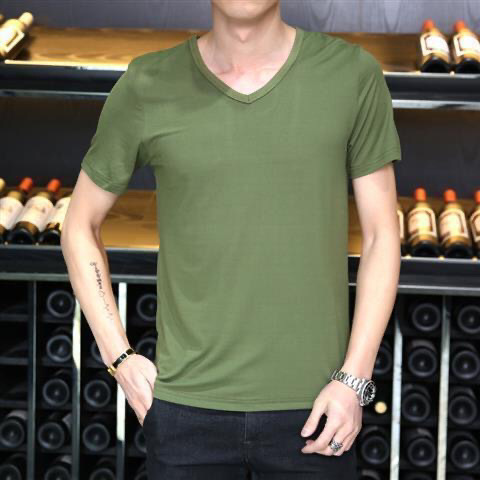 Короткий рукав V-образный вырез-Army Green