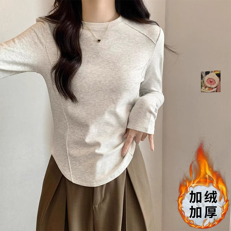 Главная страница > Белая Базовая рубашка с длинными рукавами, Женская осенне-зимняя короткая Дизайнерская футболка с начесом с коротким верхом «Рыбьи Кости», Приталенная футболка с начесом на флисовой подкладке
