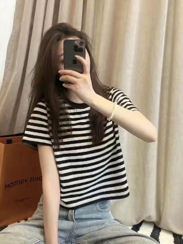 2024 летний новый хлопковый топ с круглым вырезом