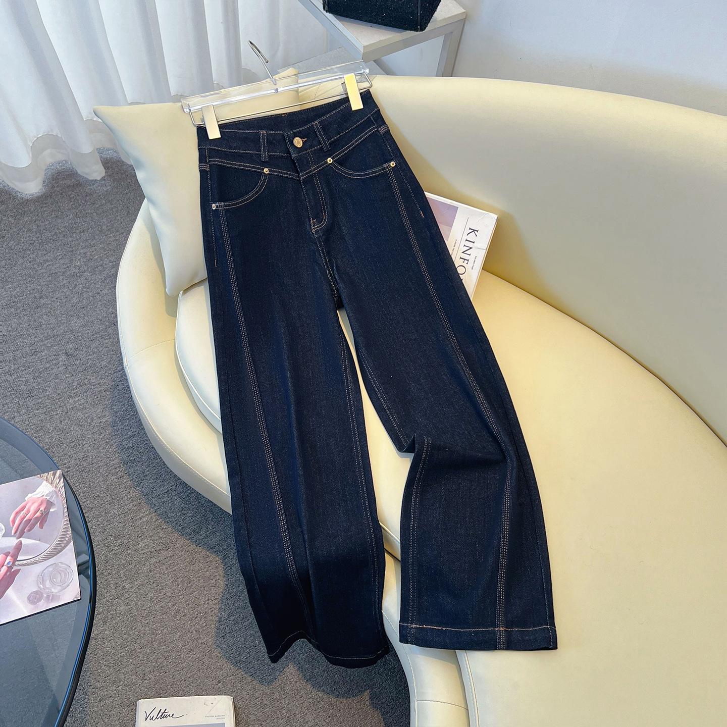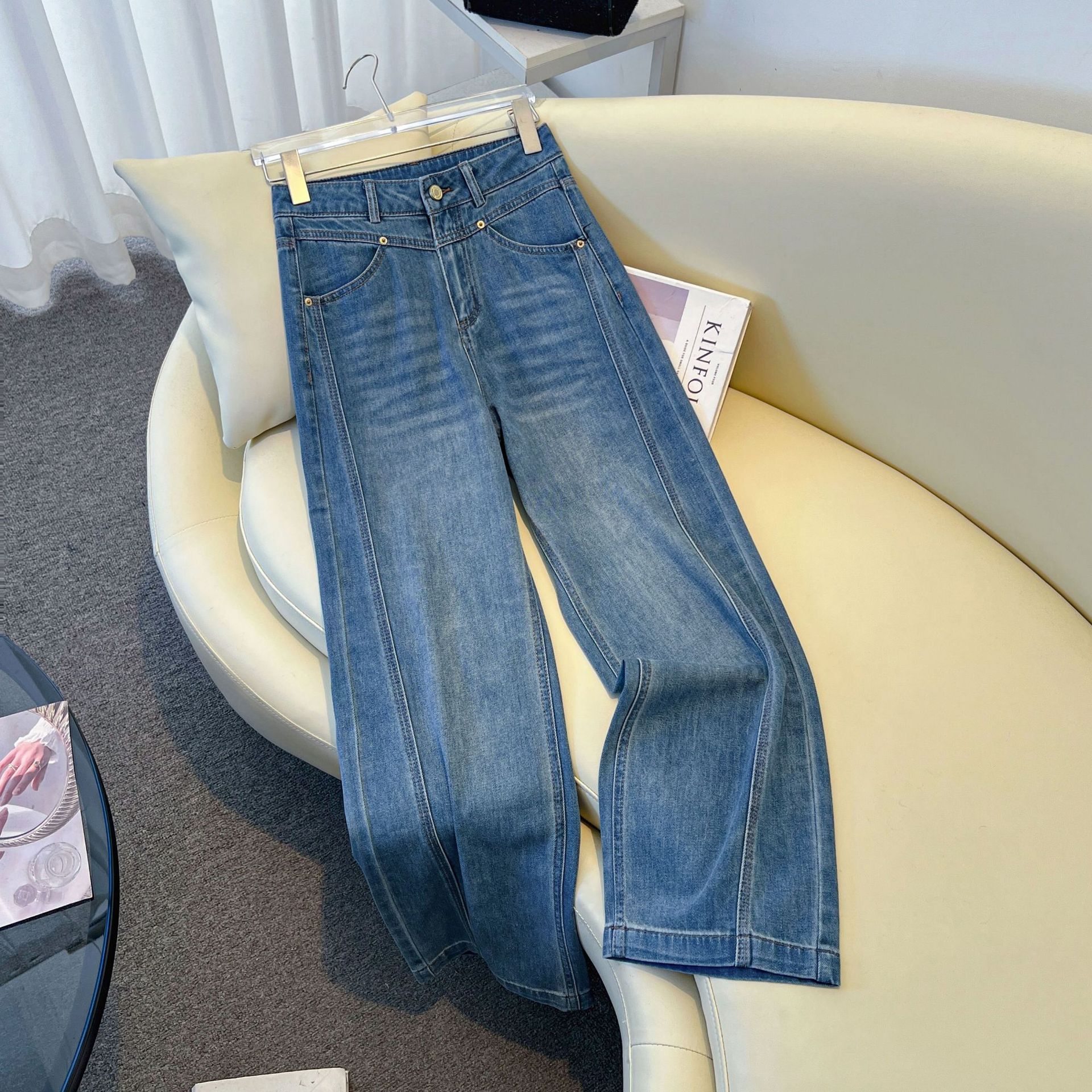 Главная страница > Широкие джинсы для женщин, новинка осени 2025, с высокой талией, свободные, стройнящие, драпирующиеся, брюки в пол, модные прямые брюки