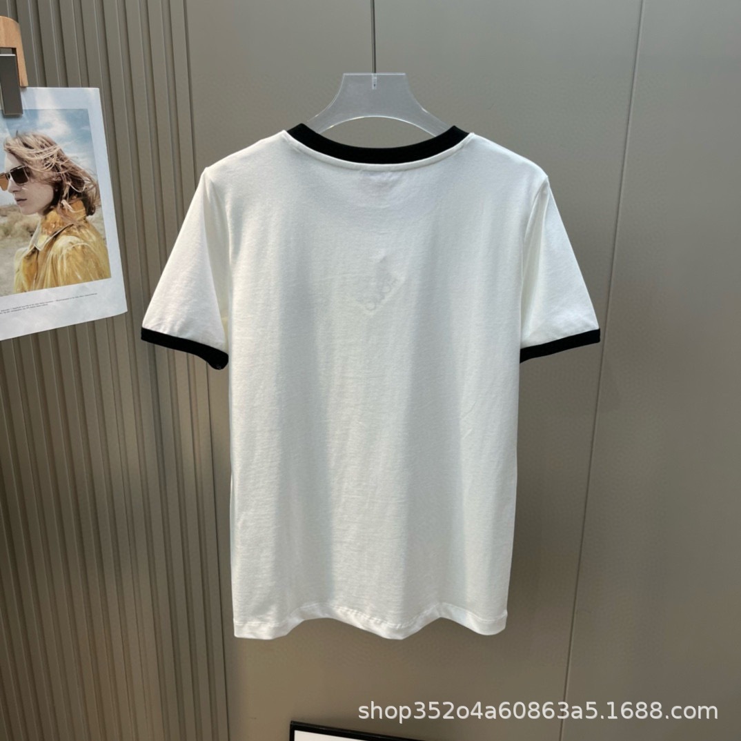 Shenzhen Nanyou стильная женская одежда 25 летняя новая футболка с вышивкой логотипа контрастного цвета женская футболка с короткими рукавами из чистого хлопка белый топ
