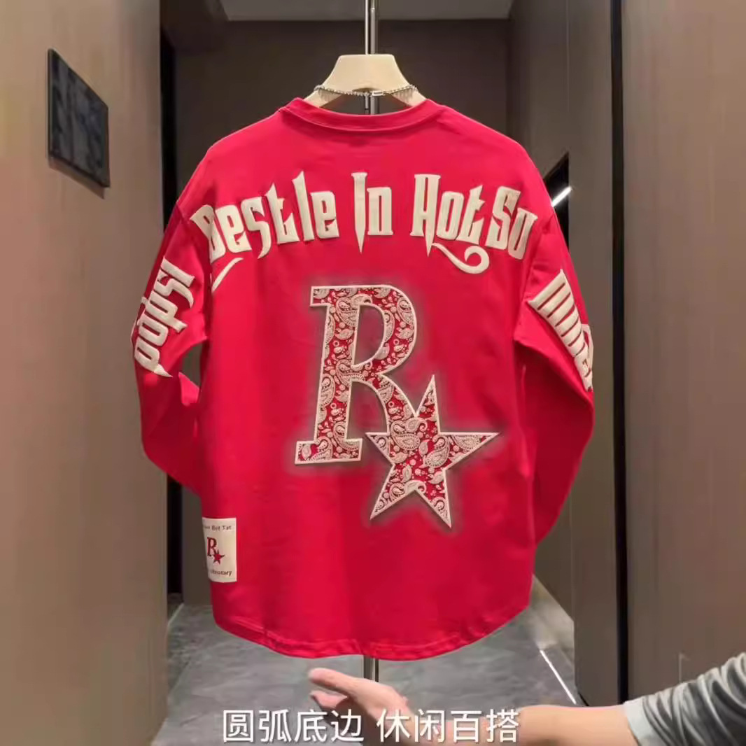Главная страница > Осенний новый тренд с пенистым принтом с круглым воротником свитер мужской моды дикий свободный дышащий дугообразный топ нижний рубашка