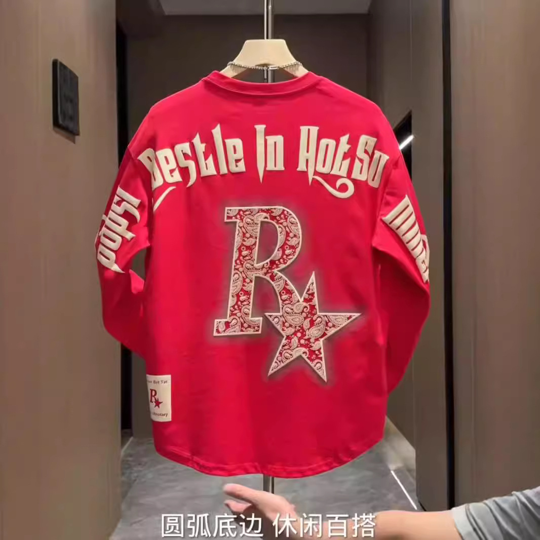 Осенний новый тренд с пенистым принтом с круглым воротником свитер мужской моды дикий свободный дышащий дугообразный топ нижний рубашка