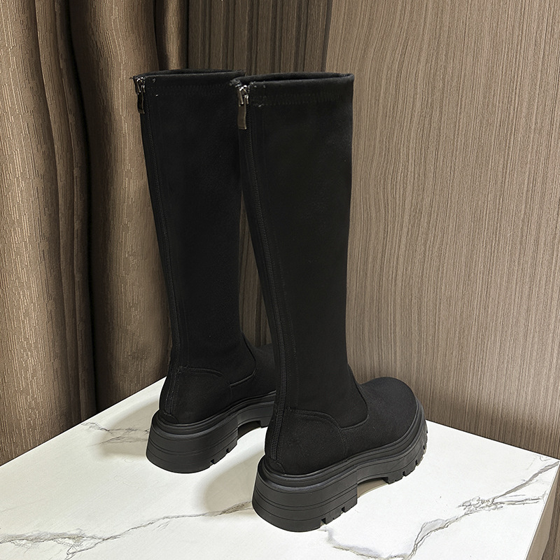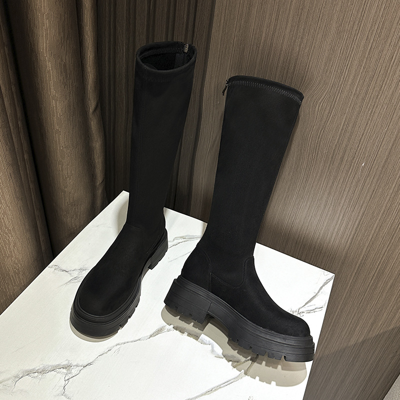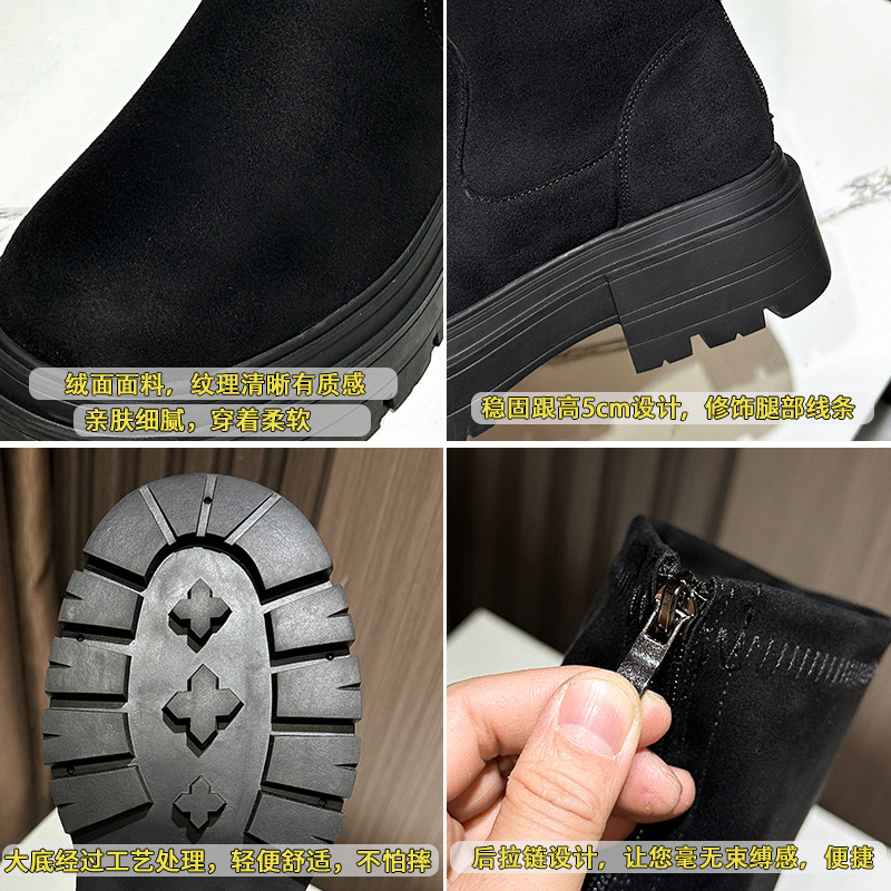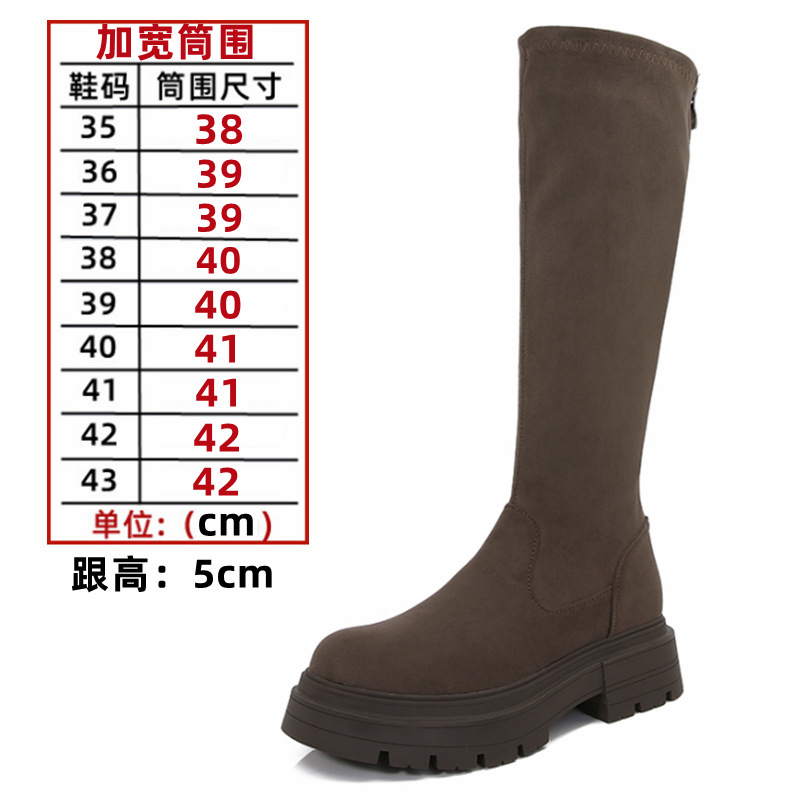 Добавить толстые большие размеры 41-43 сапоги женские сапоги 2023 осень-зима Новые толстые подошвы с высокой трубкой эластичные тонкие сапоги
