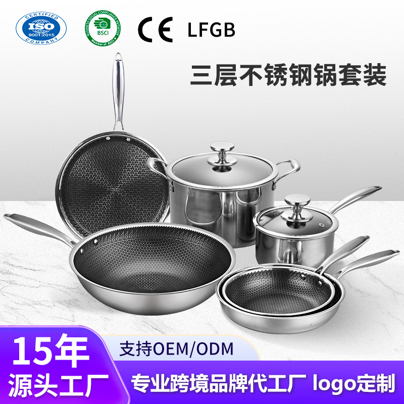Главная страница > Трансграничная трехслойная сковорода из нержавеющей стали 304/316, сковорода с антипригарным покрытием, набор сковородок для молока с антипригарным покрытием вок