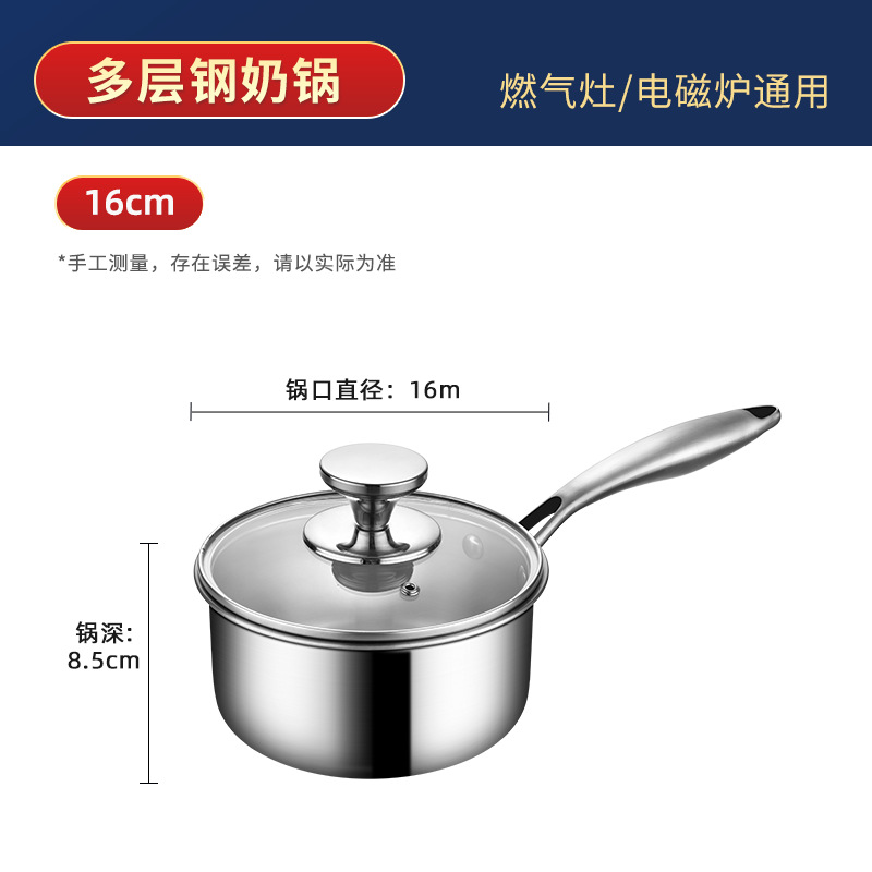 Трехслойный стальной односторонний горшок для молока + стеклянная крышка [внутренний диаметр 16 см]