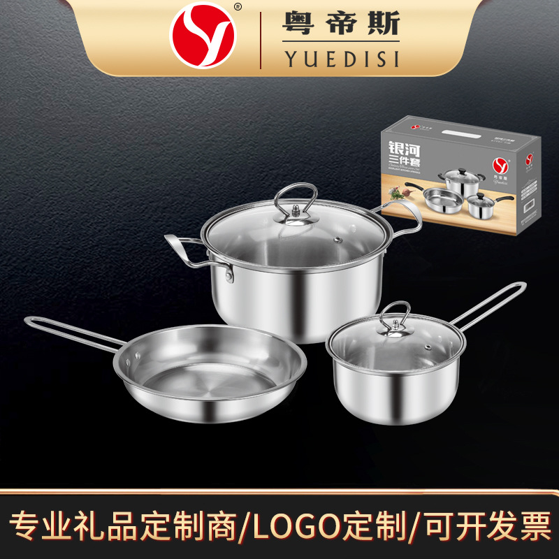Фабричный прямой подарочный набор из нержавеющей стали Горшок Кухонный набор из трех предметов Горшок для супа Молочная сковорода Сковорода Подарочный набор из трех предметов