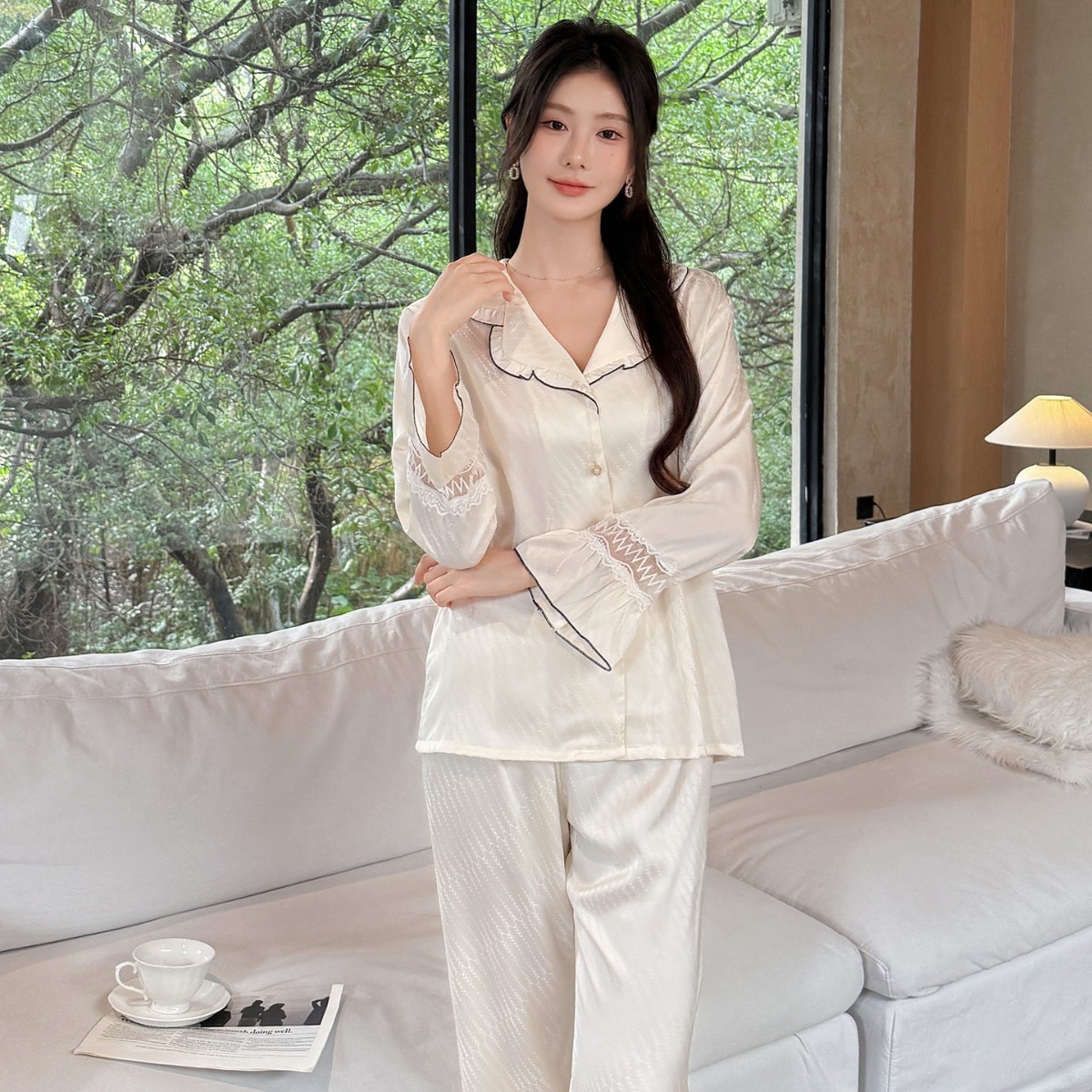 Главная страница > Пара пижам женская оптовая ледяная шелковая симуляция шелка с длинными рукавами летняя передовая домашняя одежда Весна и осень тонкий набор