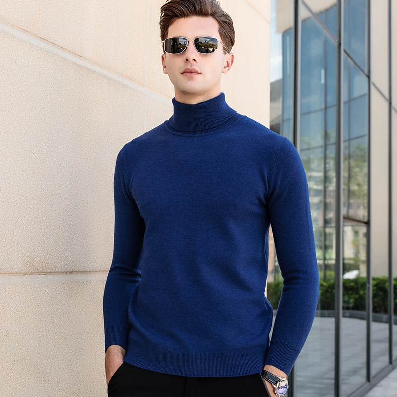 Главная страница > Мужской свитер-водолазка 2025 года, однотонный, облегающий, вязаный, больших размеров, модный повседневный пуловер, базовая футболка для внешней торговли.