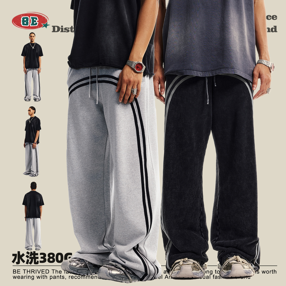 Главная страница > Мужская одежда BE 2025, молодежные уличные модные спортивные потертые брюки на молнии с лямкой «батик», широкие спортивные штаны