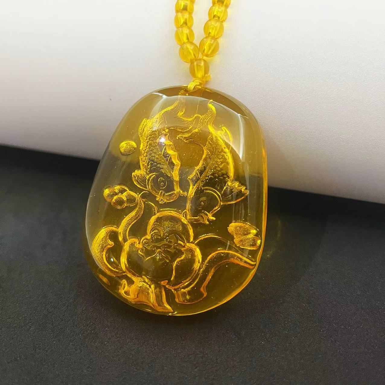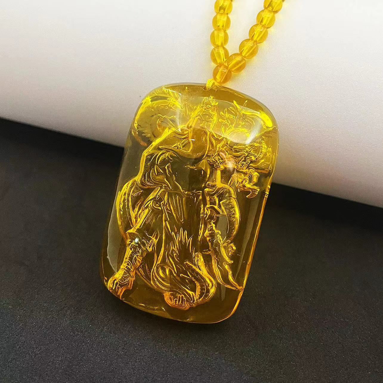 Ожерелье из искусственного янтаря с внутренней резьбой — Guan Gong
