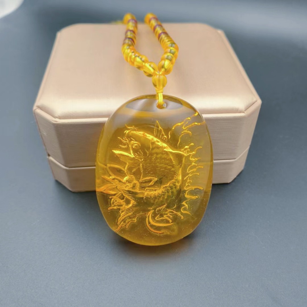 Ожерелье из искусственного янтаря с внутренней резьбой-Koi