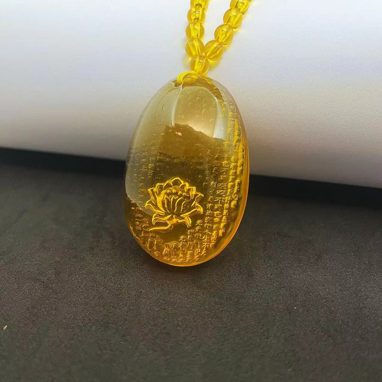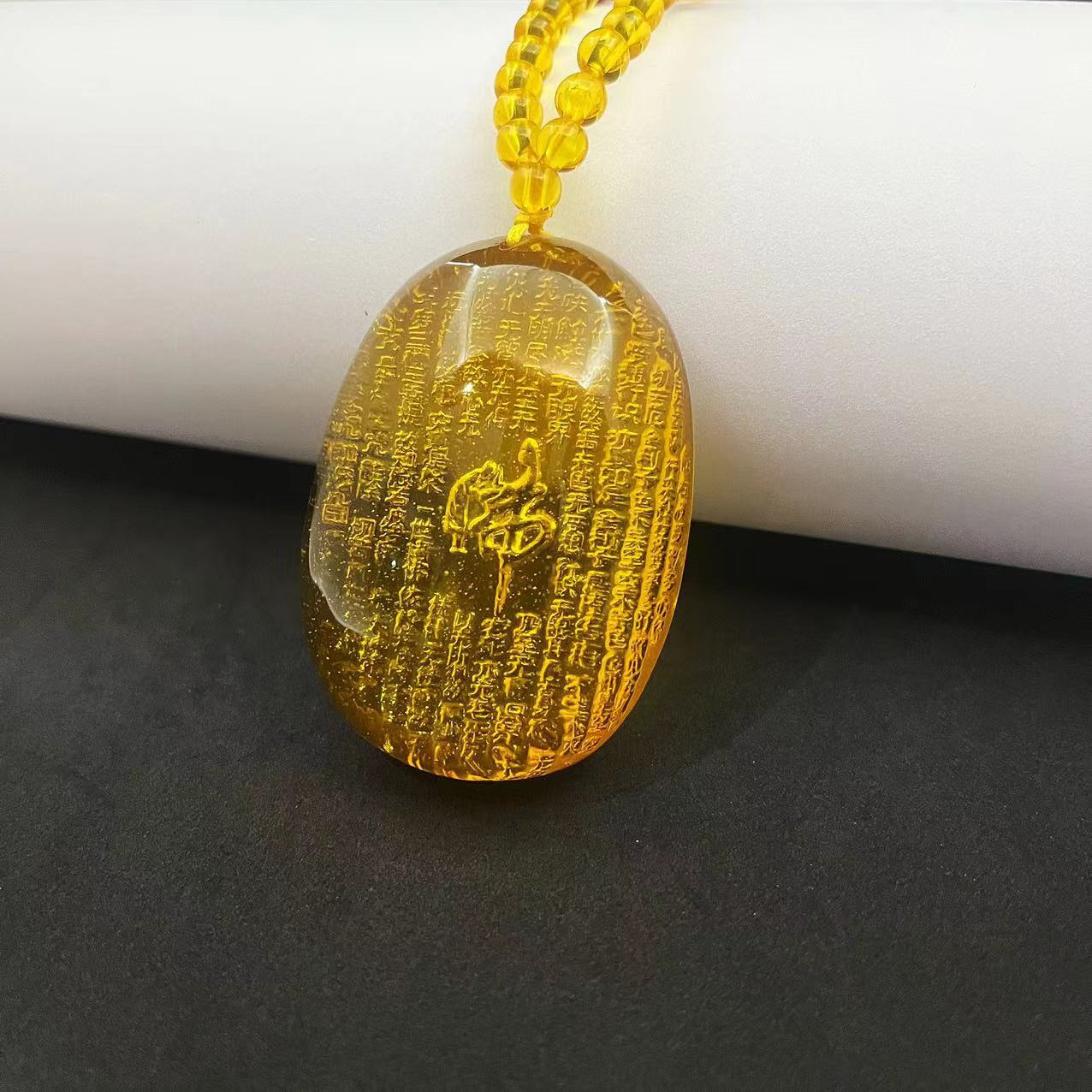 Ожерелье из искусственного янтаря с внутренней резьбой — Будда из сердца Sutra Будды