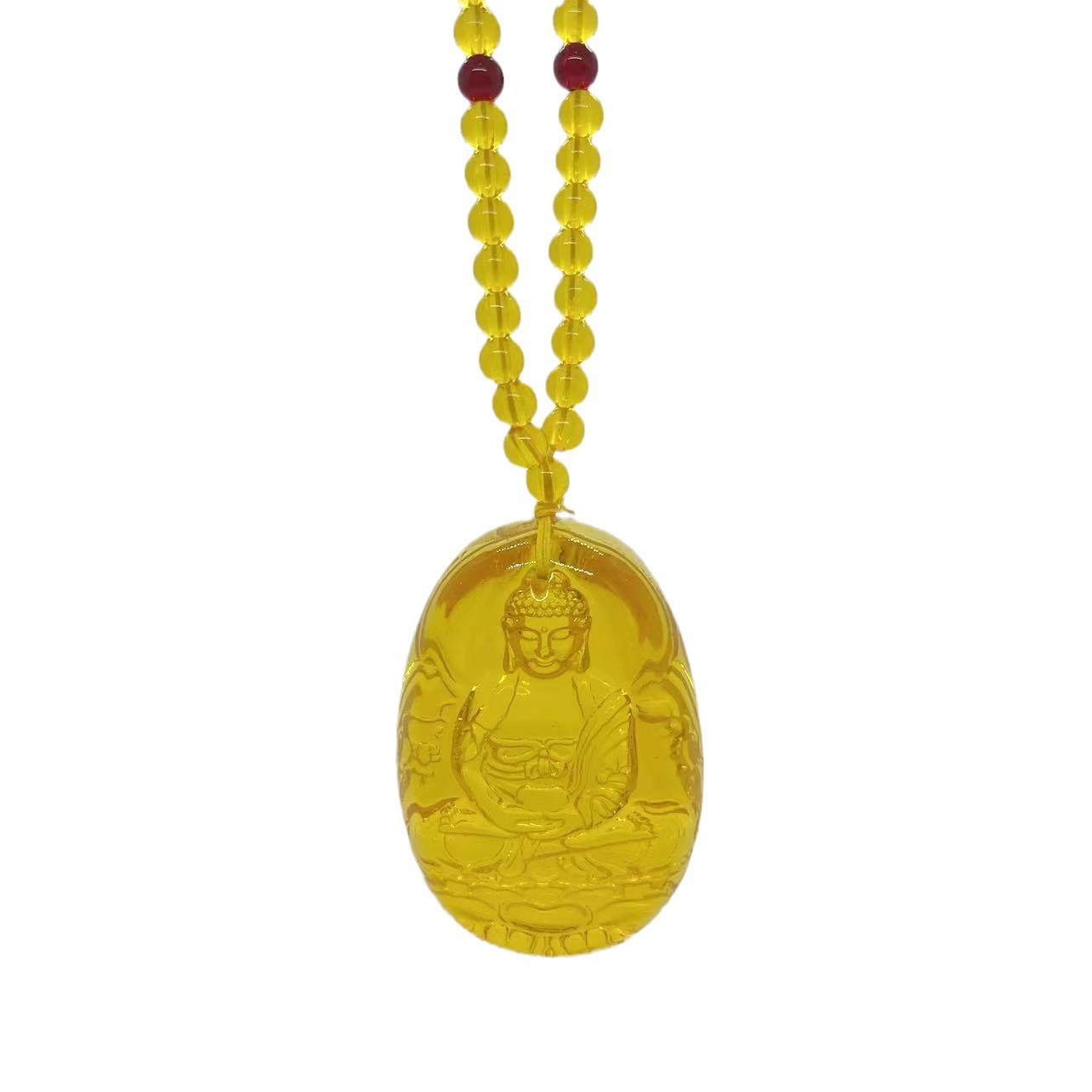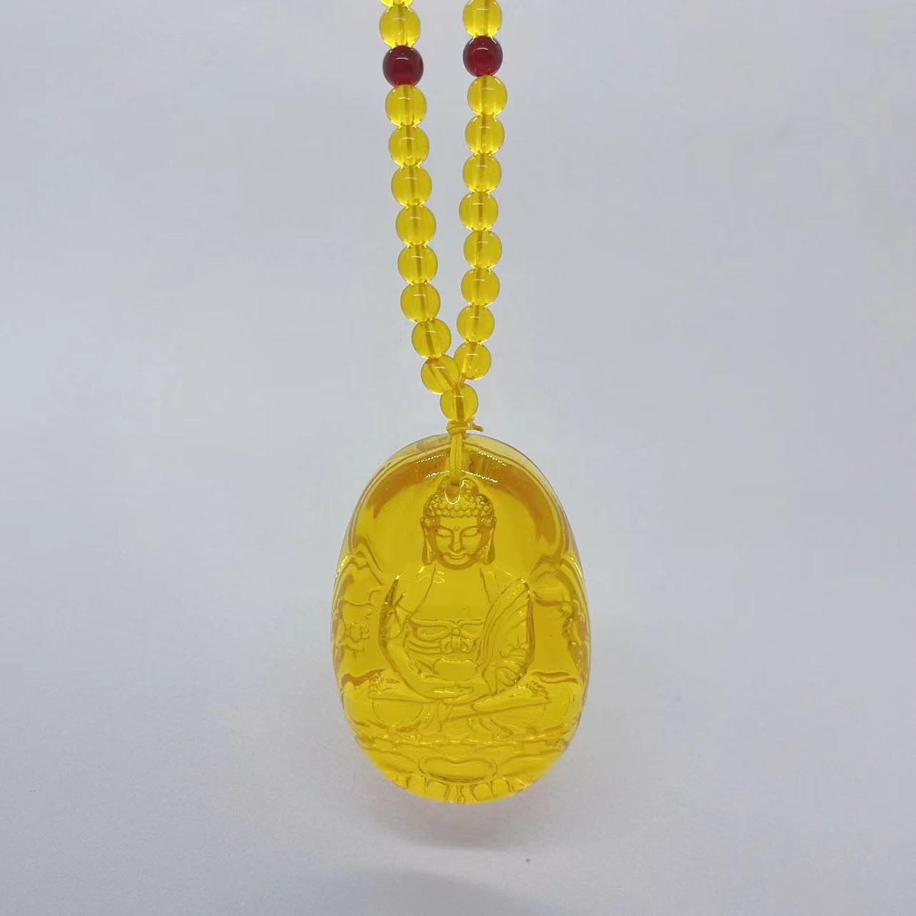 Ожерелье из искусственного янтаря с внутренней резьбой-Аmitabha
