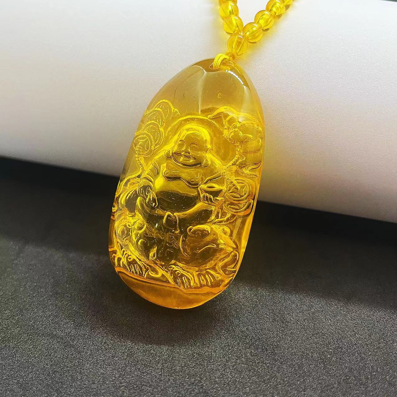 Ожерелье из искусственного янтаря с внутренней резьбой – Будда Майтрейя