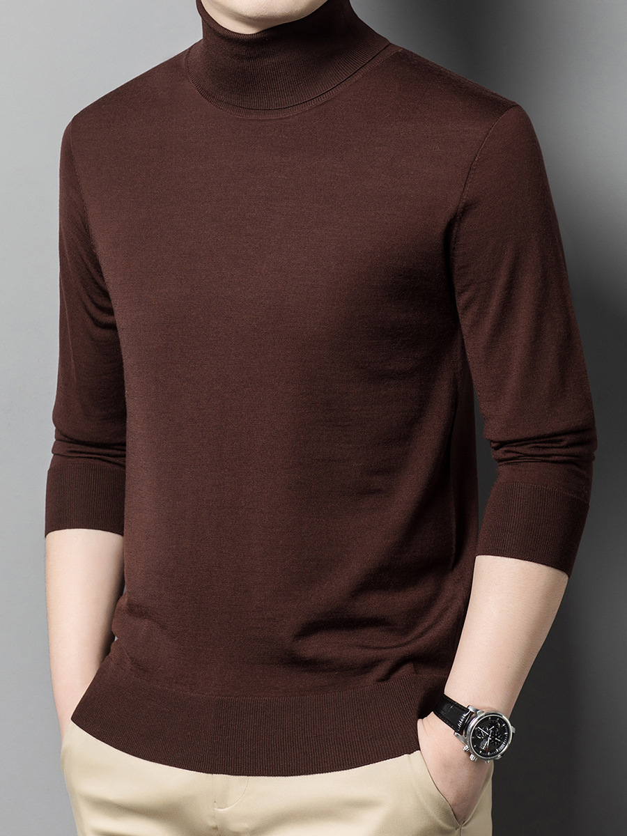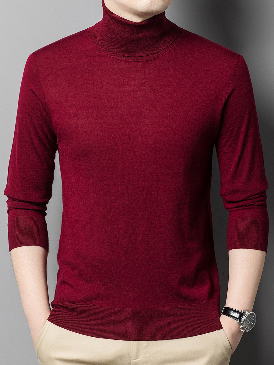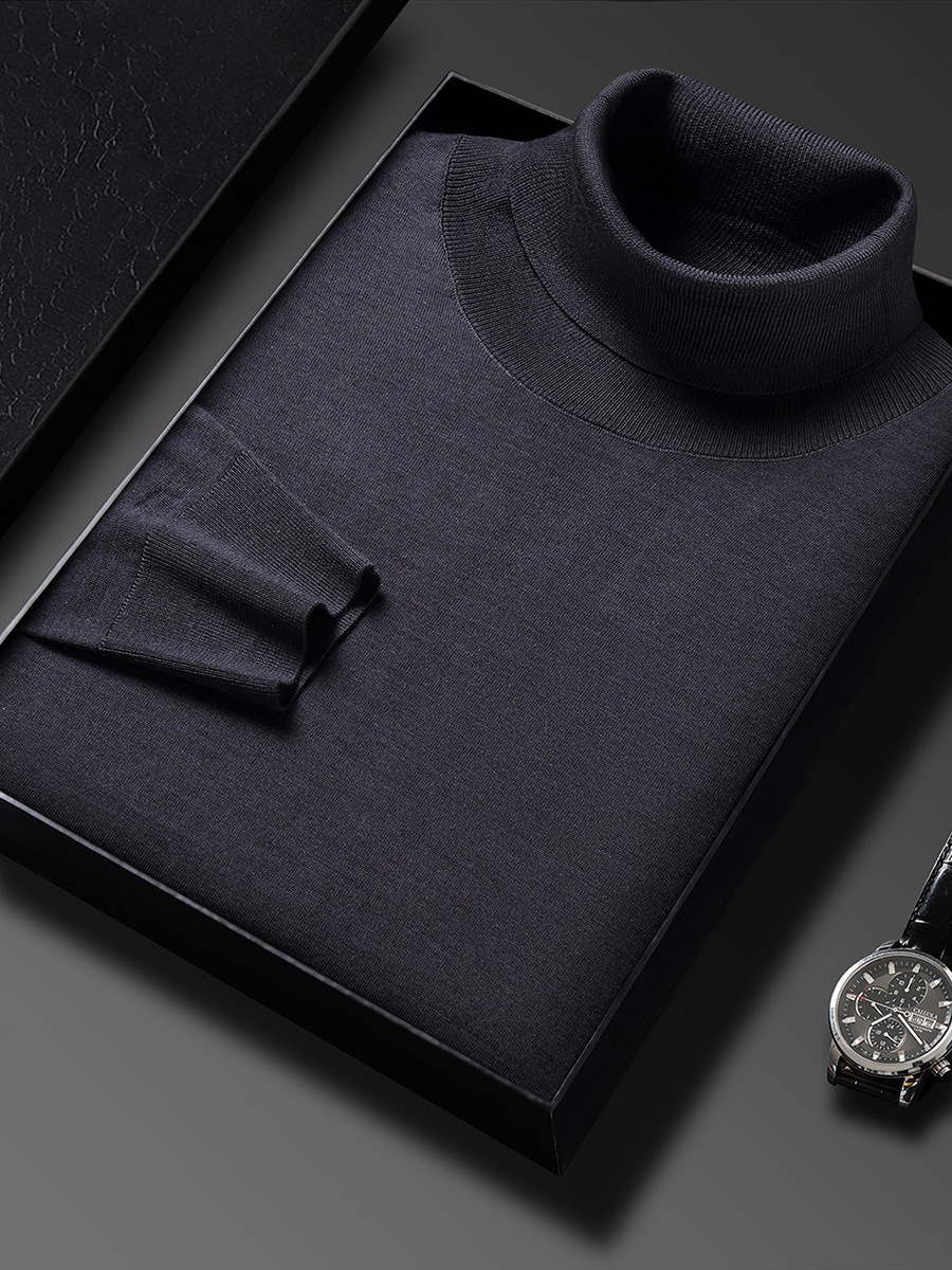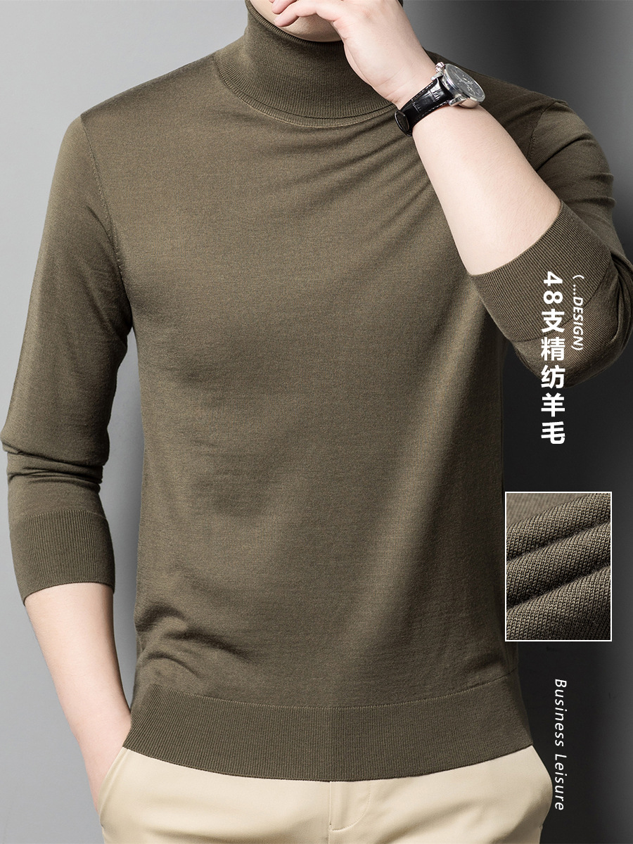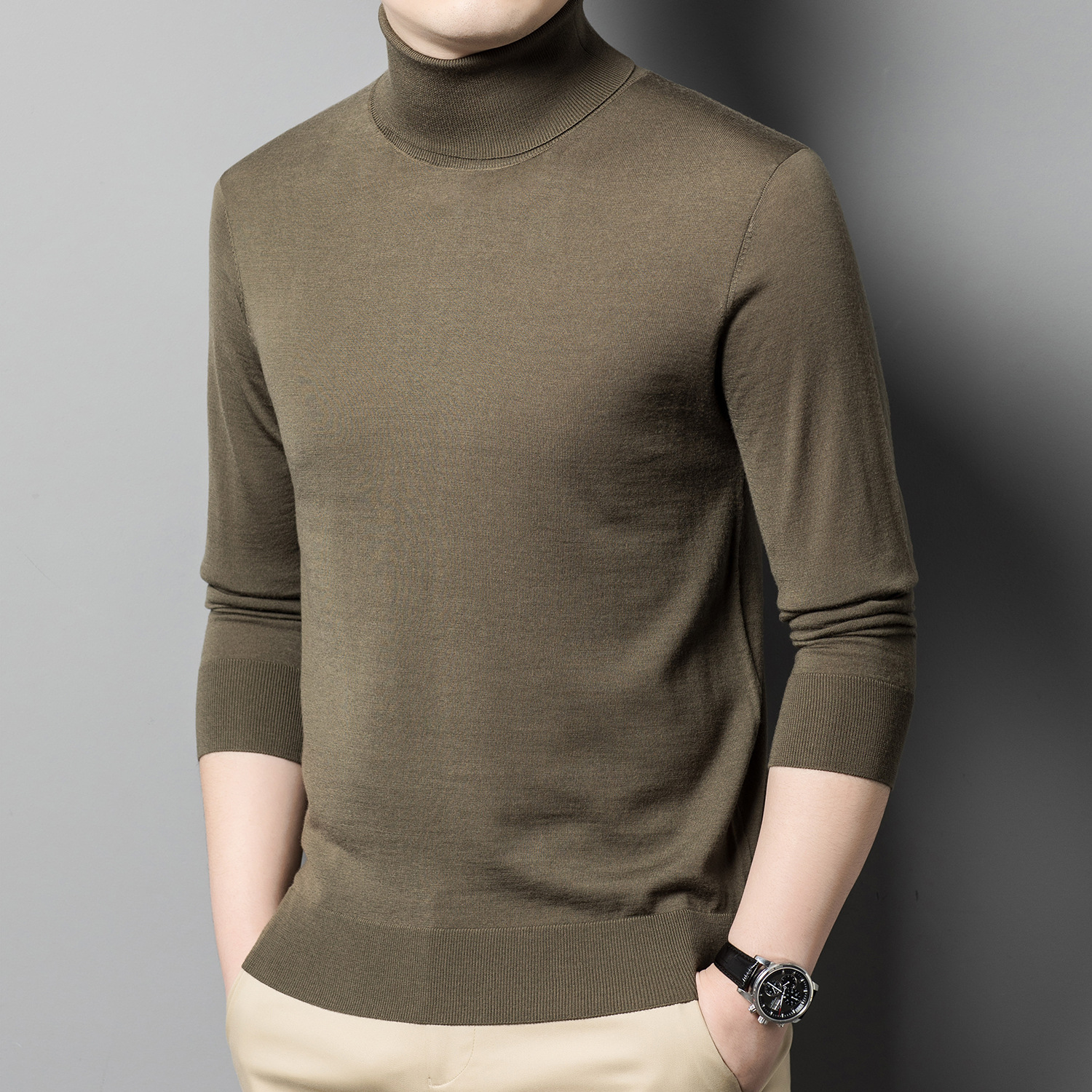 Главная страница > Мужской свитер из тонкой шерсти машинной вязки с двойным воротником, 100% шерстяной вязаный свитер с длинными рукавами и высоким воротником, тонкий.