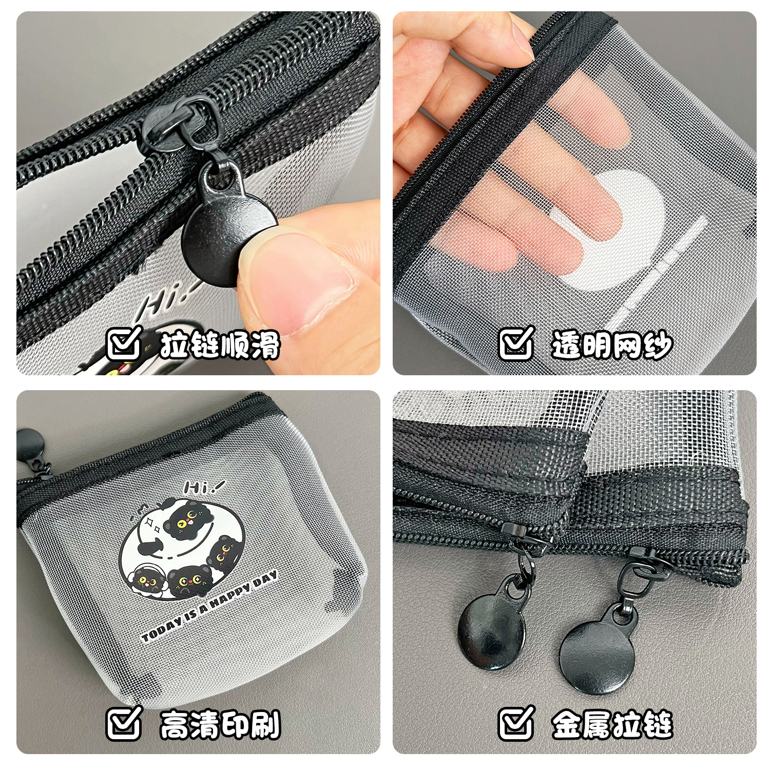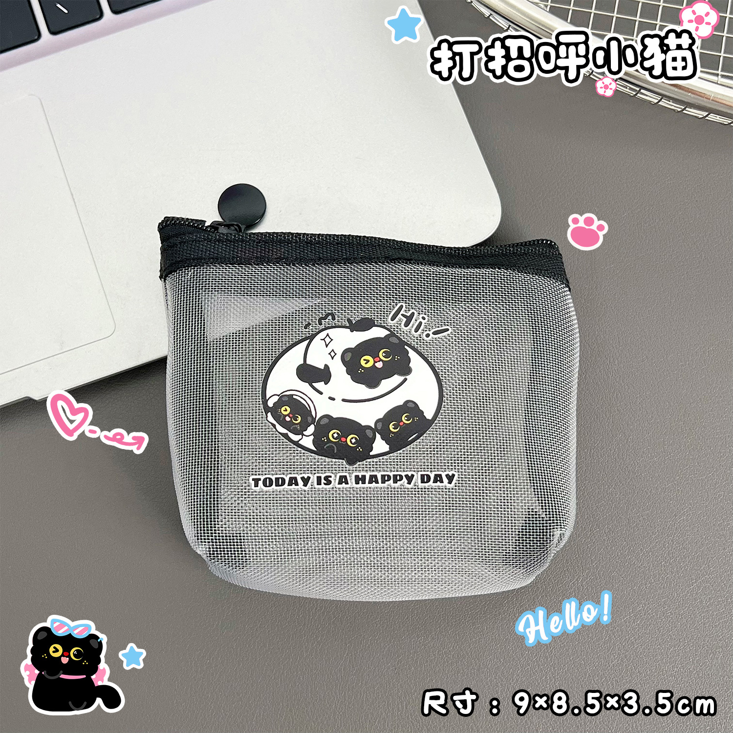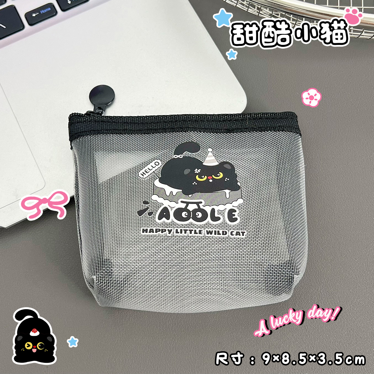 Главная страница > Черный кошачий сетчатый кошелек для монет в стиле ins, портативная сумка для монет, мультяшная помада, косметичка, мини-сумка для монет