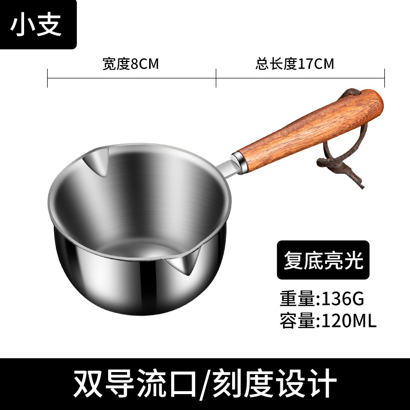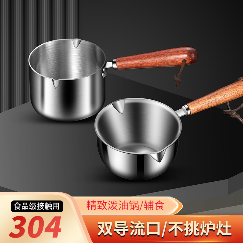 Главная страница > Новая кастрюля из нержавеющей стали 304, защищающая от брызг масла, для домашнего использования, мини-котелок для розлива горячего масла с деревянной ручкой, маленькая антипригарная кастрюля для молока.