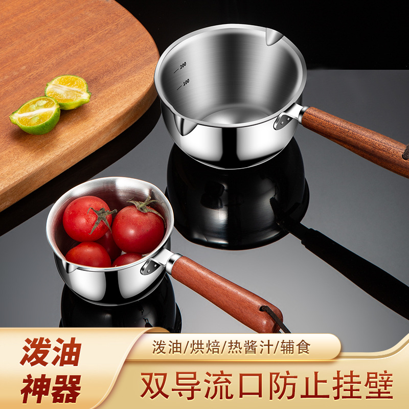 Новая кастрюля из нержавеющей стали 304, защищающая от брызг масла, для домашнего использования, мини-котелок для розлива горячего масла с деревянной ручкой, маленькая антипригарная кастрюля для молока.