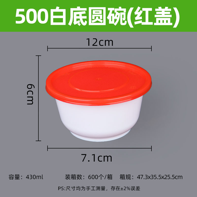 Белая миска на 500 штук с красной крышкой из полипропилена (пожалуйста, фотографируйте наборы по 600 штук)