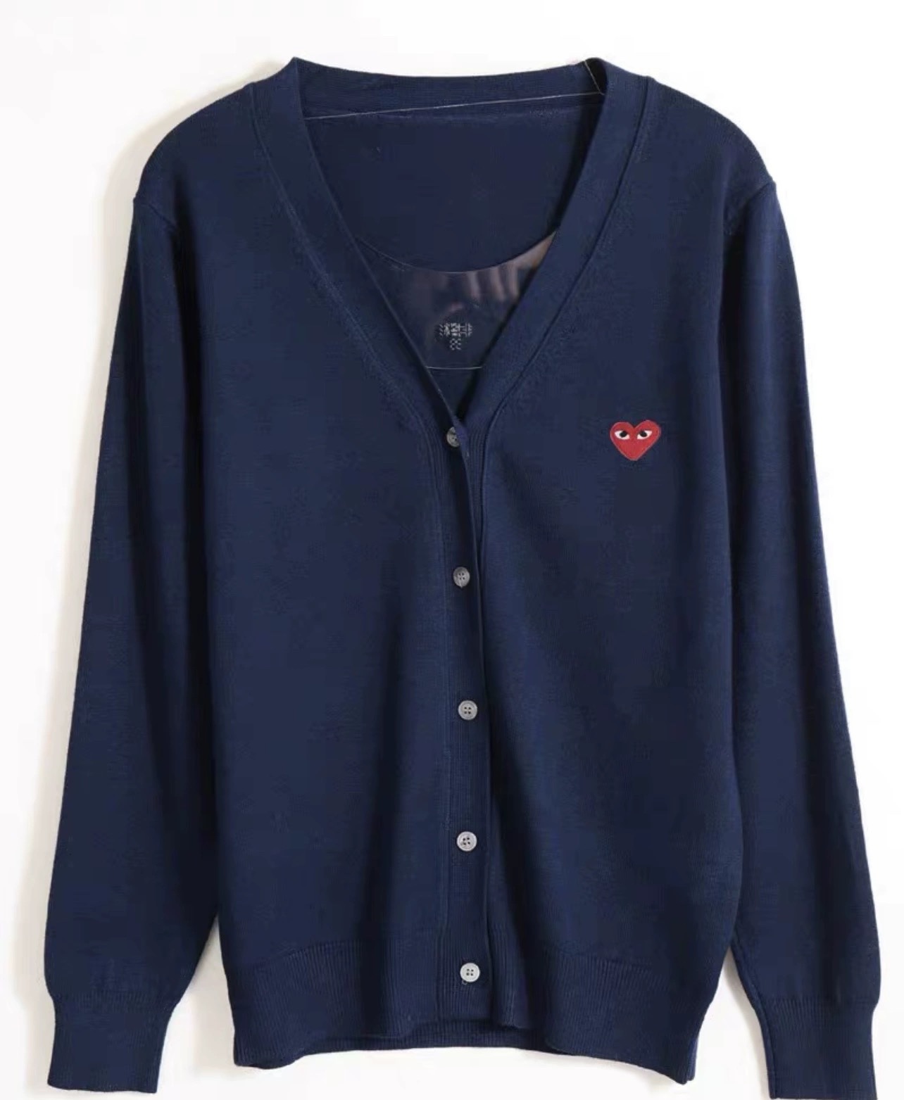 Главная страница > Японский кашемировый вязаный кардиган PLAY, женский топ с сердечками, свитер Рей Кавакубо, куртка в парном стиле, красное сердце