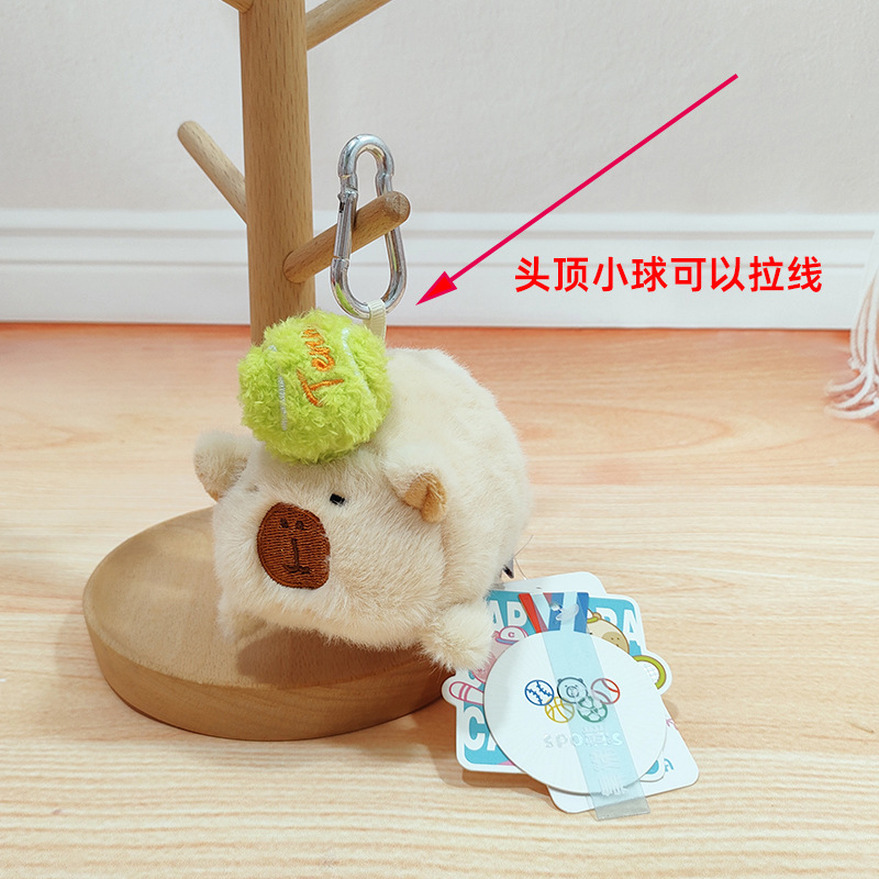 12cm Спортивная подвеска с капибарой в положении лежа, коричневая-теннисная