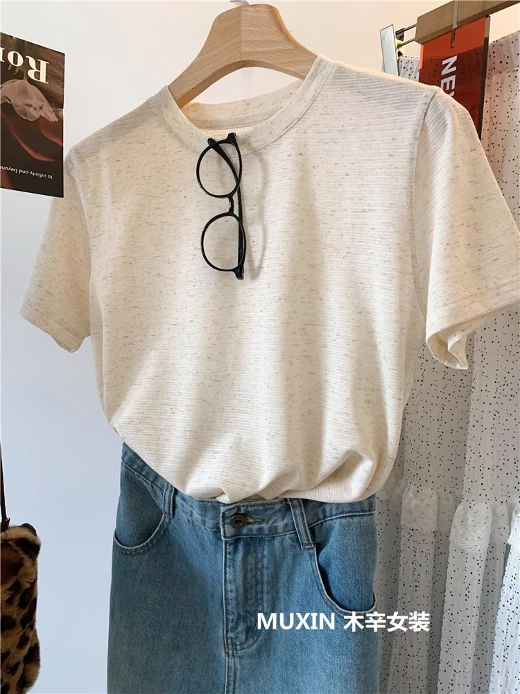 Главная страница > [Две книги по шитью] Большие размеры 120kg г. Тонкая полосатая винтажная тонкая летняя женская базовая универсальная мягкая футболка с короткими рукавами для похудения.