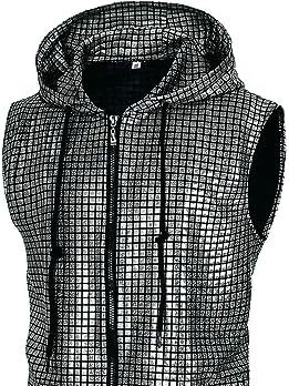 2025 новый спот мужской Disco блестящий без рукавов с капюшоном жилет металлическая рубашка на молнии с карманами